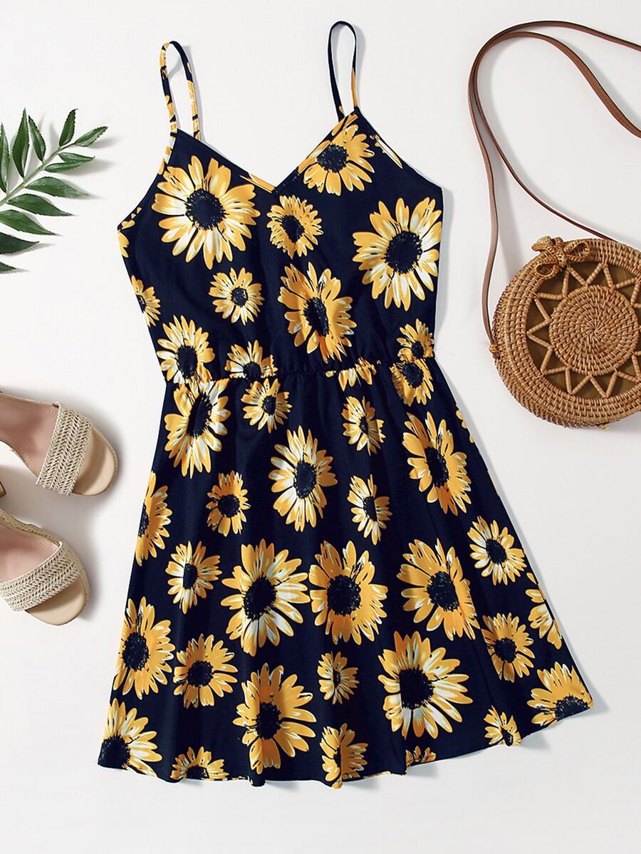 Plus Sunflower Print Cami Dress