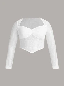 Plus Sweetheart Neck Ruched Bust Lace Top