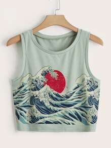 Plus Size Women Round Neck Sleeveless Short Printed Casual Vacation Home Tank Top Graphic Tees Women Tops