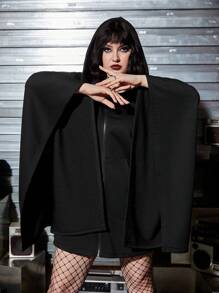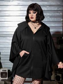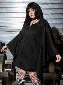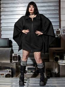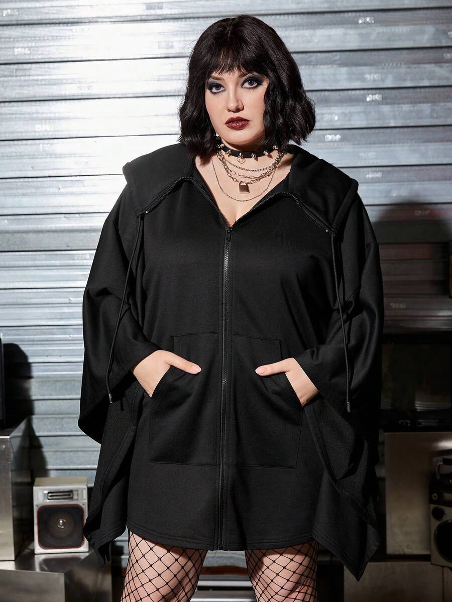 Plus Zip Up Batwing Sleeve Hooded Coat