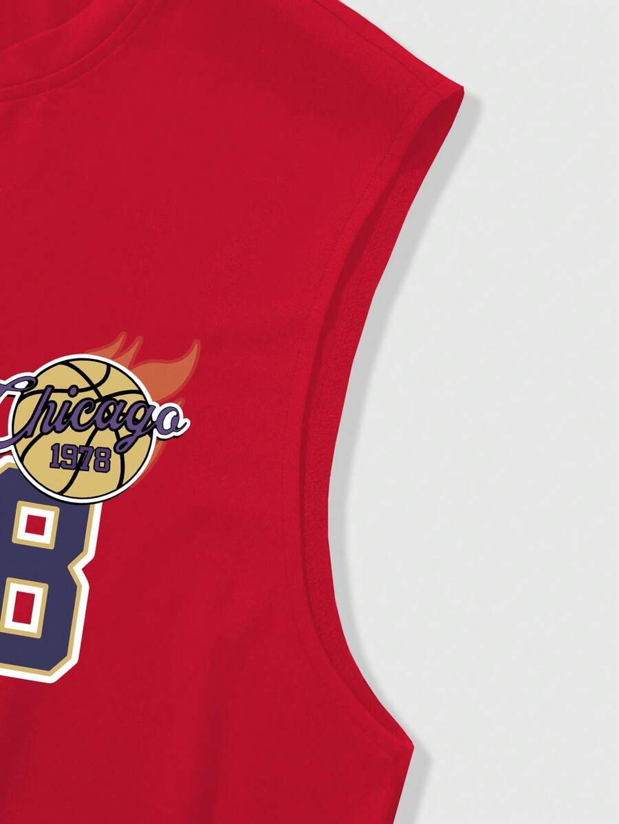 Prep 2pcs Men's Basketball Graphic Printed Crew Neck Sleeveless Top And Shorts Set