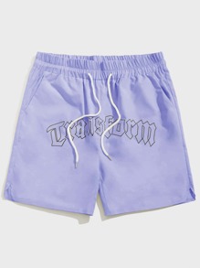Prep Guys Letter Graphic Drawstring Waist Shorts