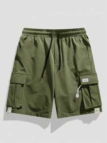 Prep Guys Letter Patched Detail Flap Pocket Drawstring Shorts