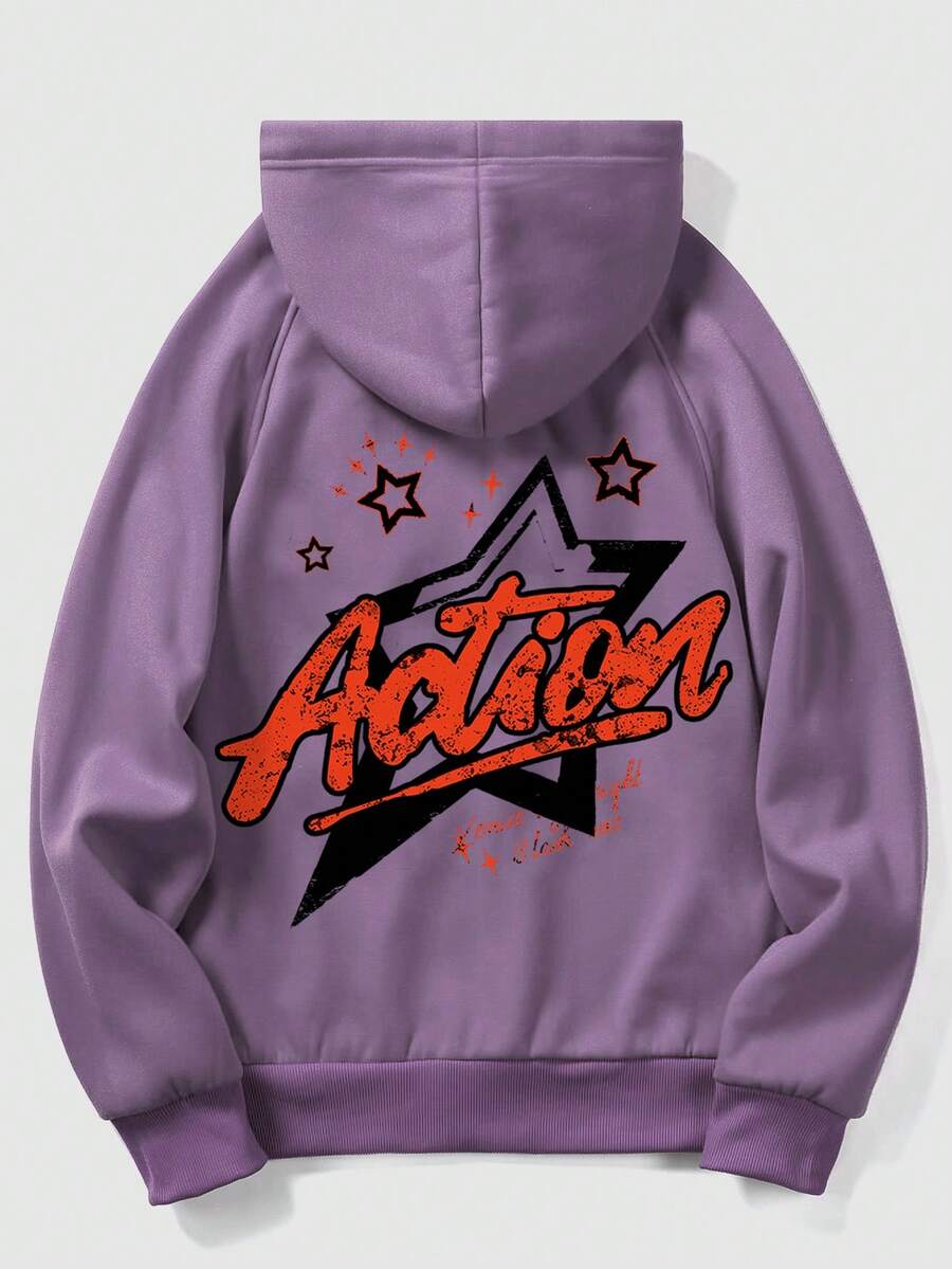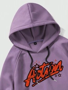 Prep Guys Star & Letter Graphic Raglan Sleeve Drawstring Thermal Lined Hoodie