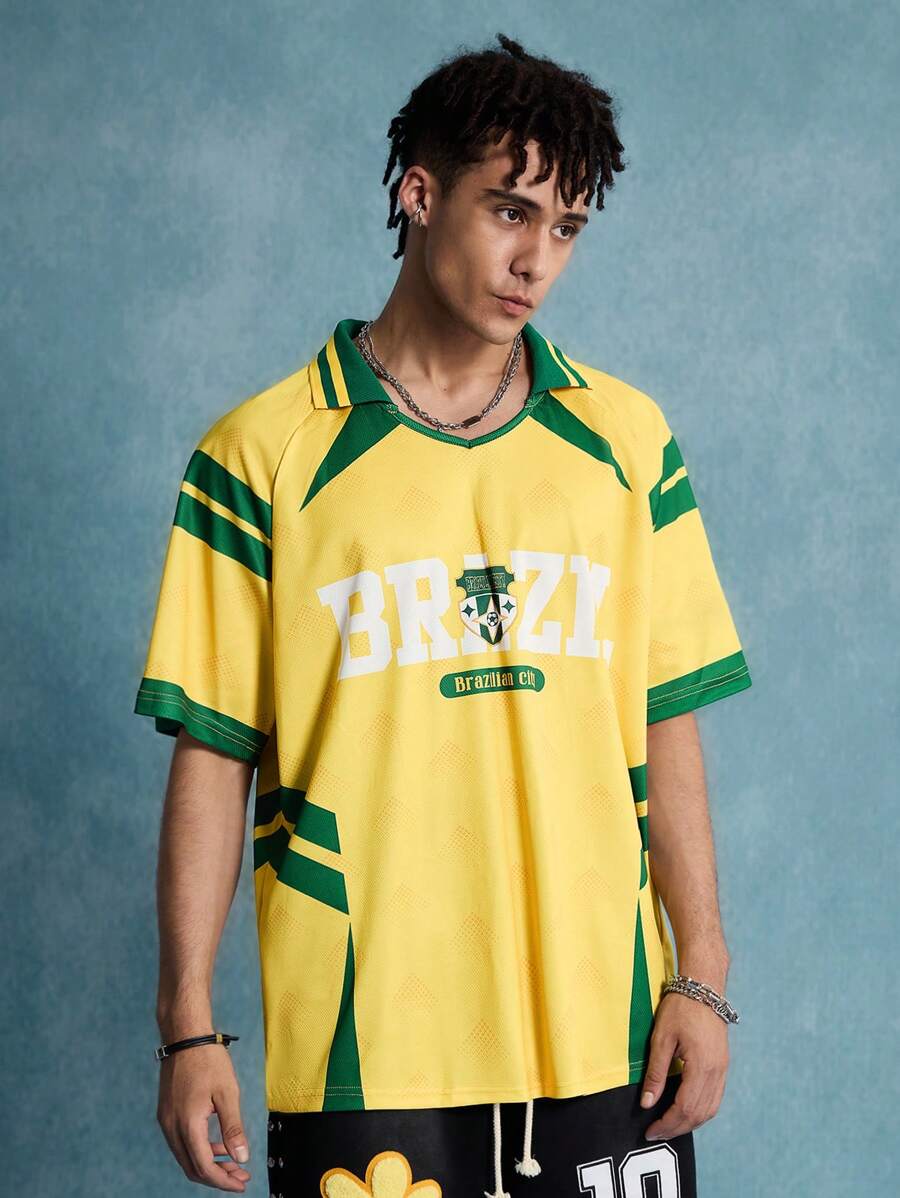 Prep Men Jersey Brazil Football Sports Polo Shirt
