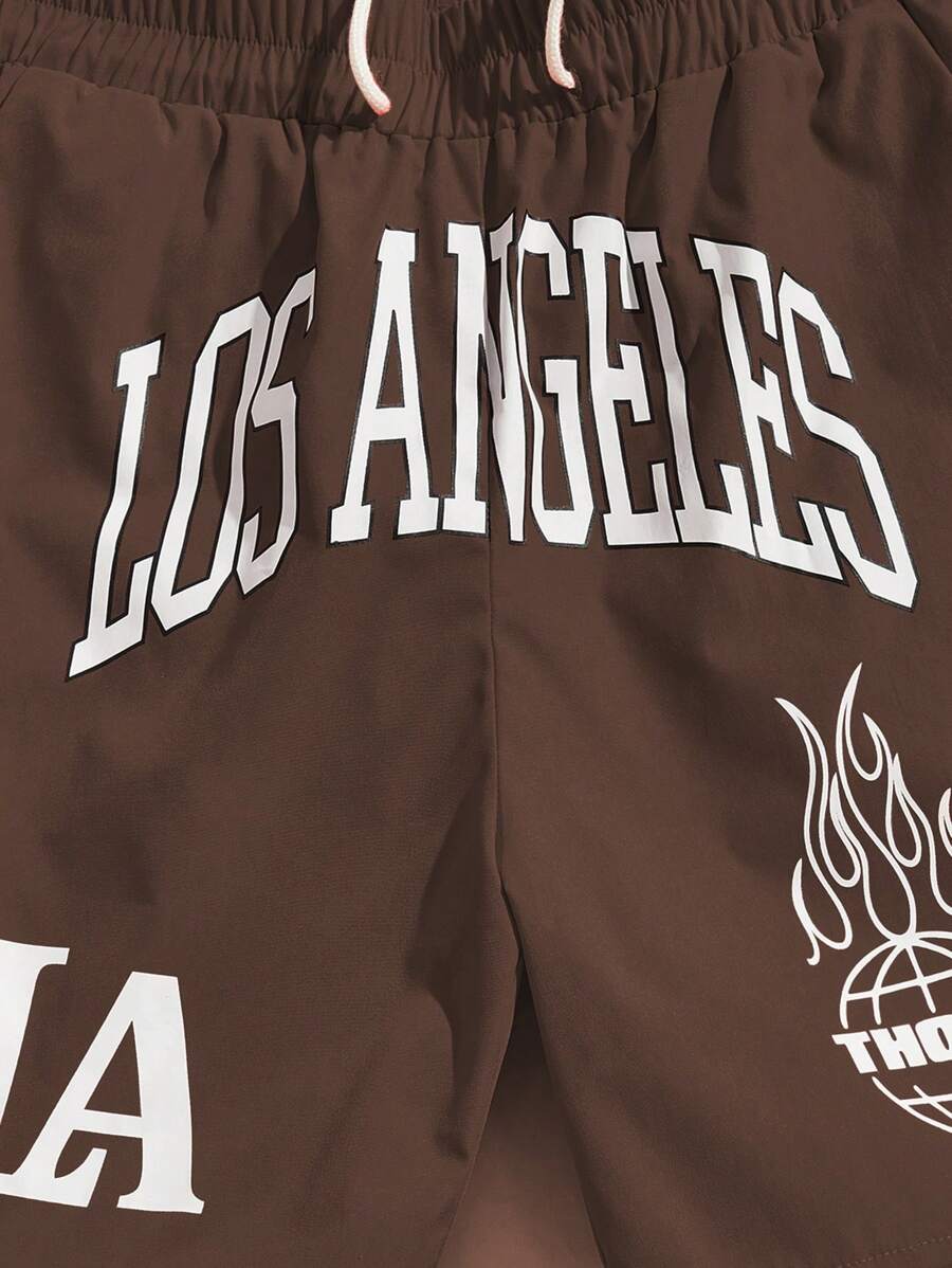 Prep Men Letter Graphic Drawstring Waist Shorts, School