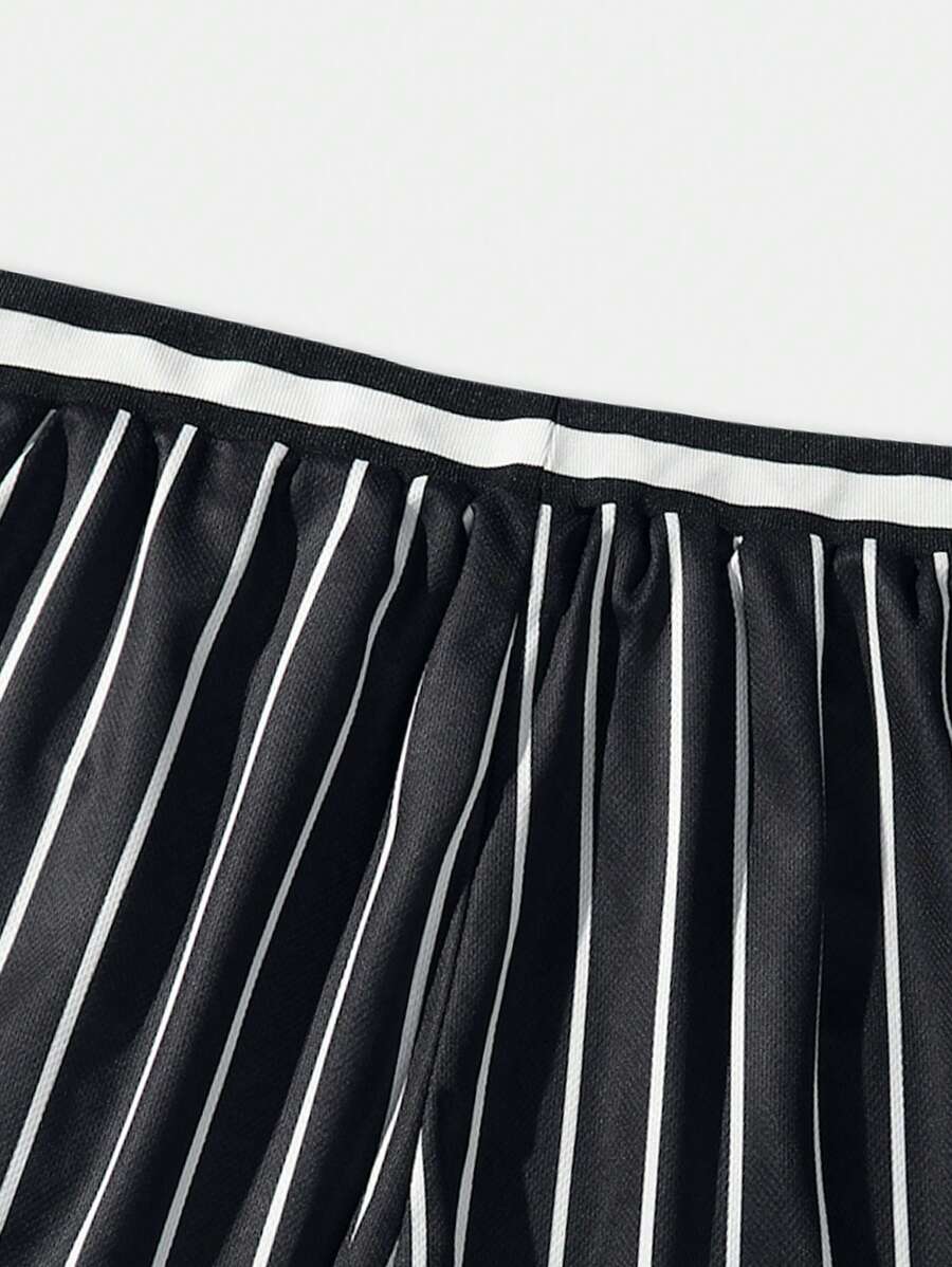 Prep Men Striped & Letter Graphic Drawstring Waist Mesh Basketball Shorts