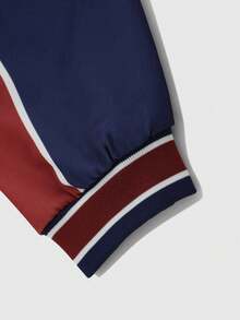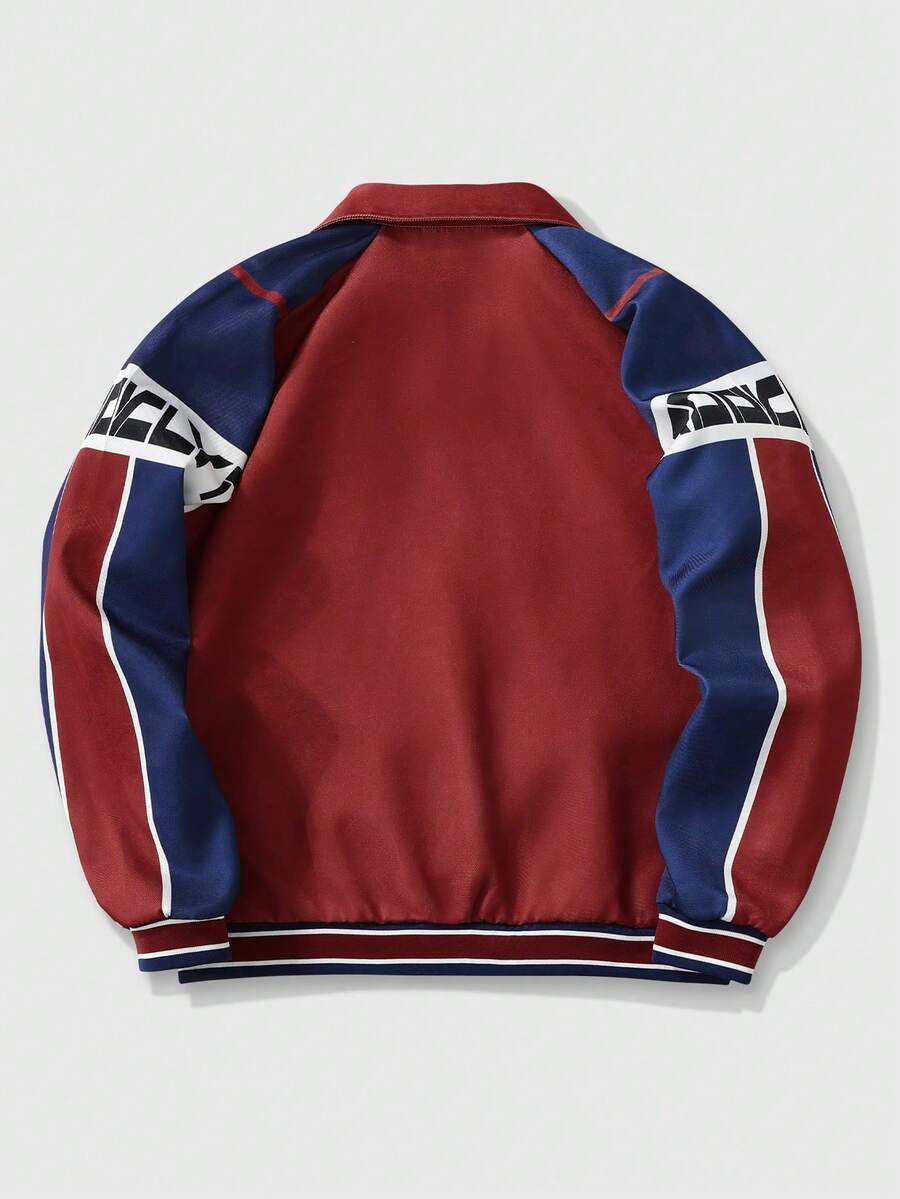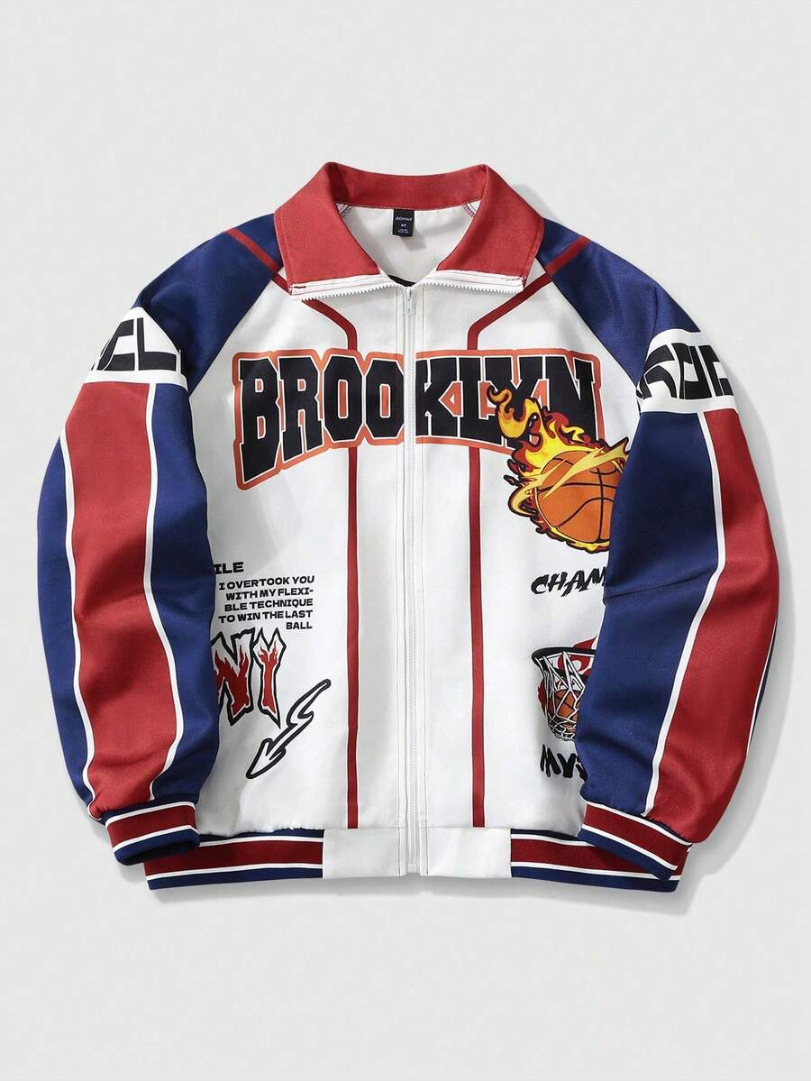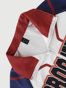 Prep Men's Long Sleeve Basketball Casual Color-Blocking Letter Print Zip-Up Rave Jacket, Autumn