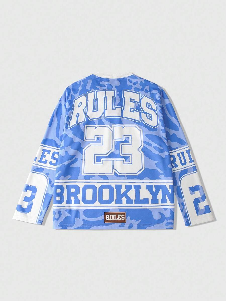 Prep Men's Camouflage Letter Print Long Sleeve Hockey T-Shirt Jersey