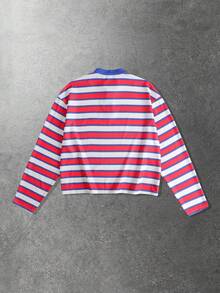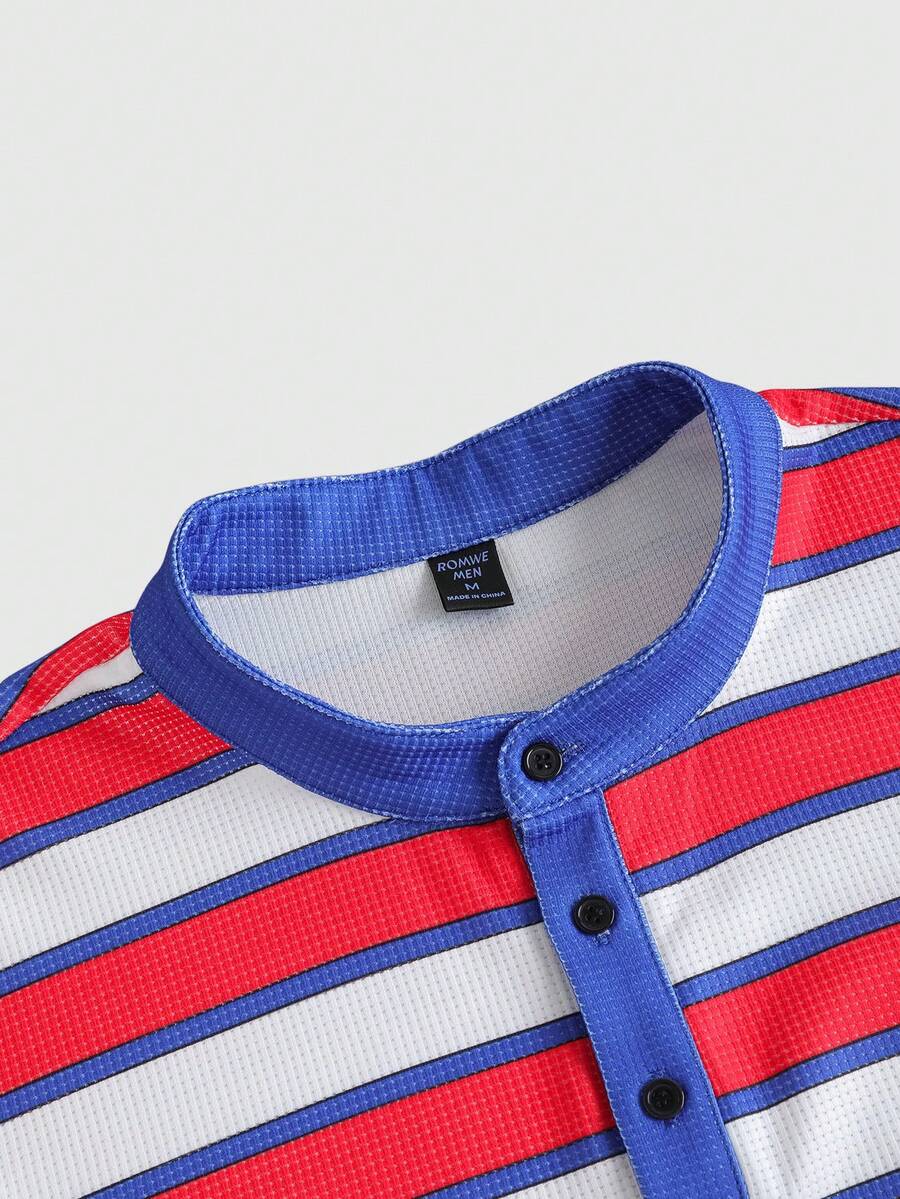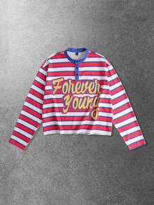 Prep Men's Casual Contrast Stripe & Letter Print T-Shirt