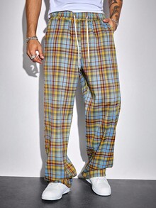 Prep Men's Casual Plaid Drawstring Waist Pants, For Fall