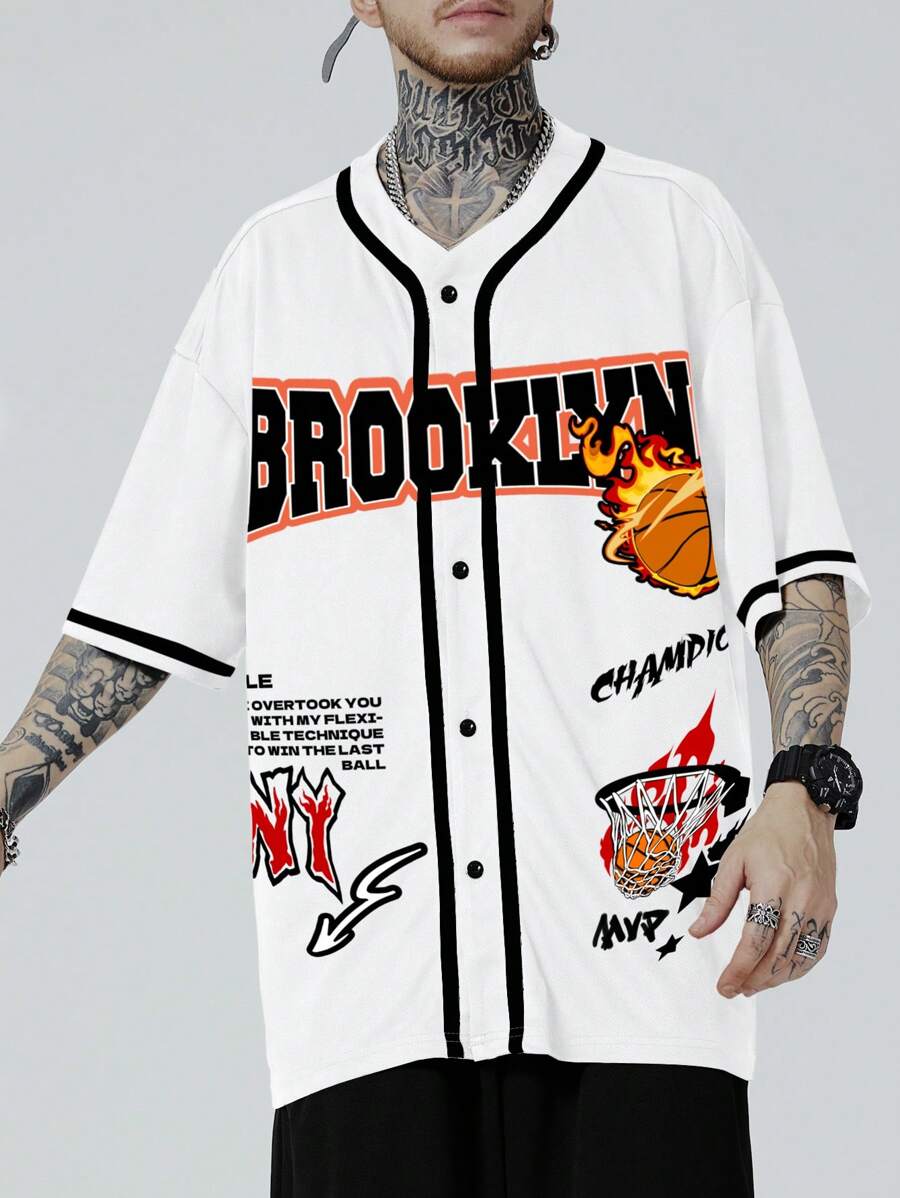 Prep Men's Color Block Basketball Slogan Printed Football Jersey Style Shirt, School