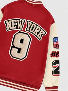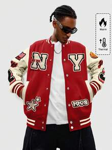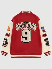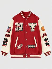 Prep Men's Color Block Stitching Front Button Number Alphabet Pattern Pocket Casual Rave Jacket, Fall/Winter