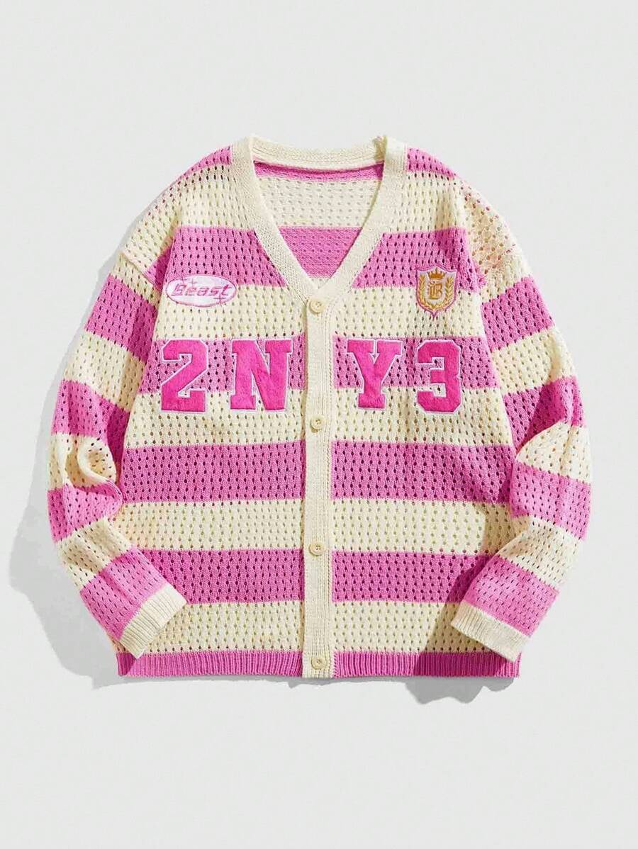 Prep Men's Contrast Stripe Embroidered Loose Cardigan