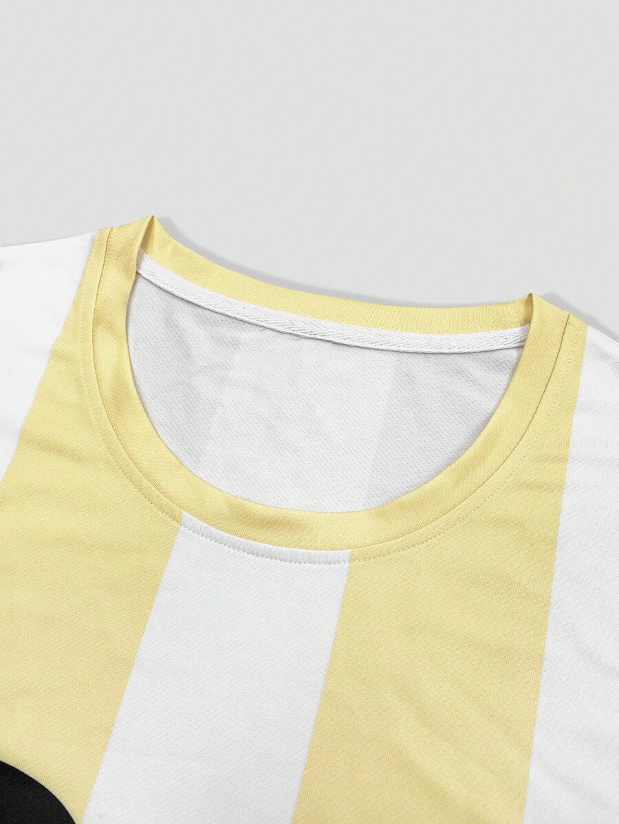 Prep Men's Contrast Stripe & Numeric Print Long Sleeve T-Shirt Sporty Jersey