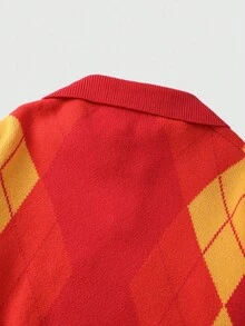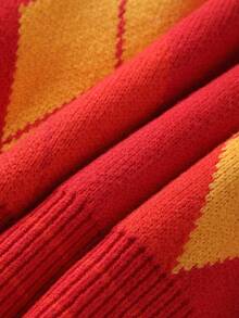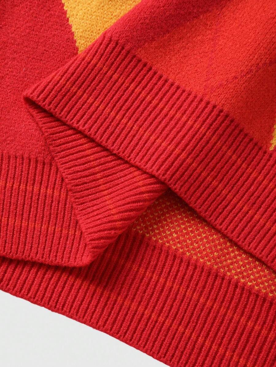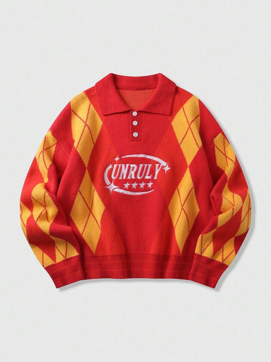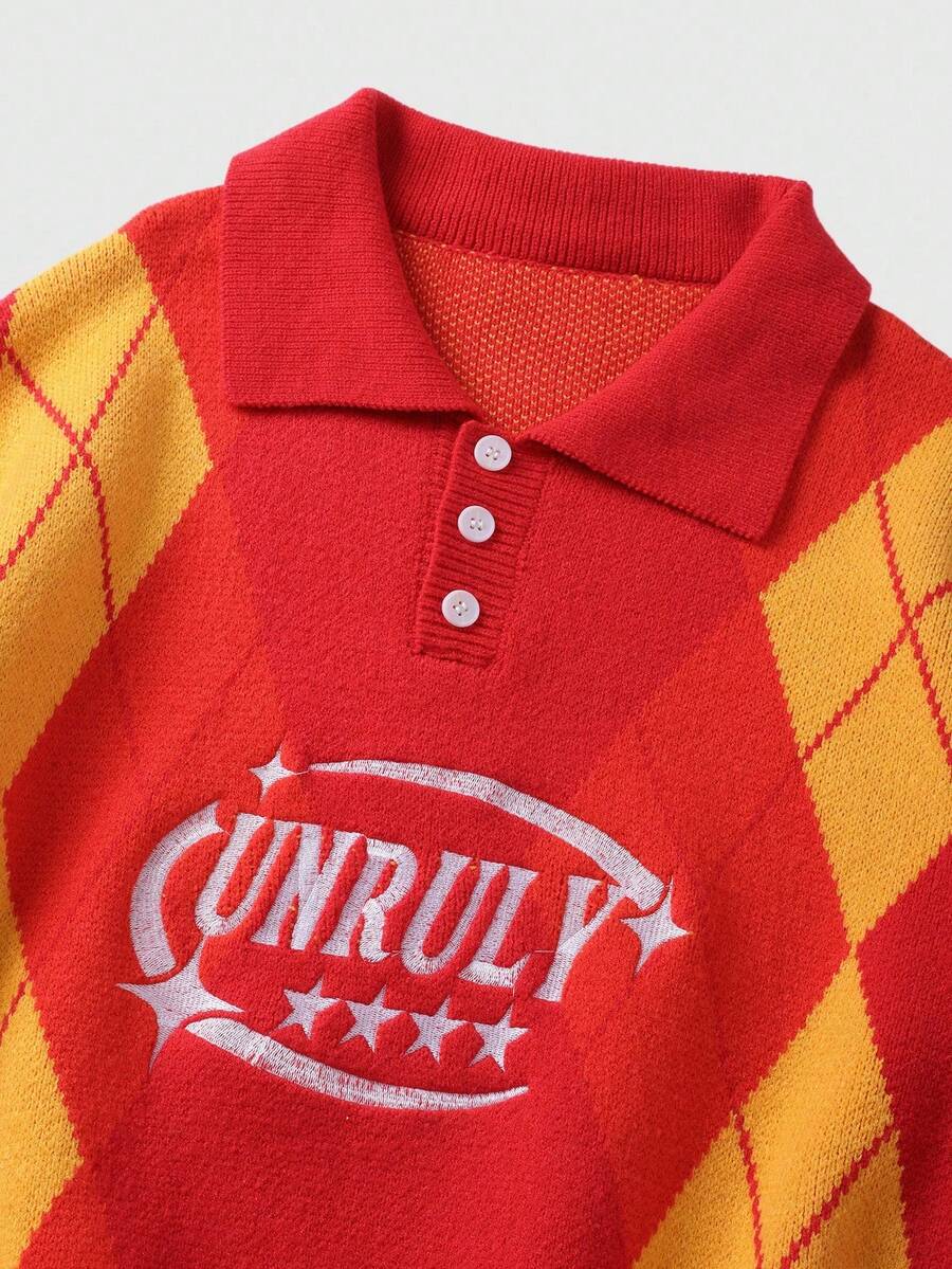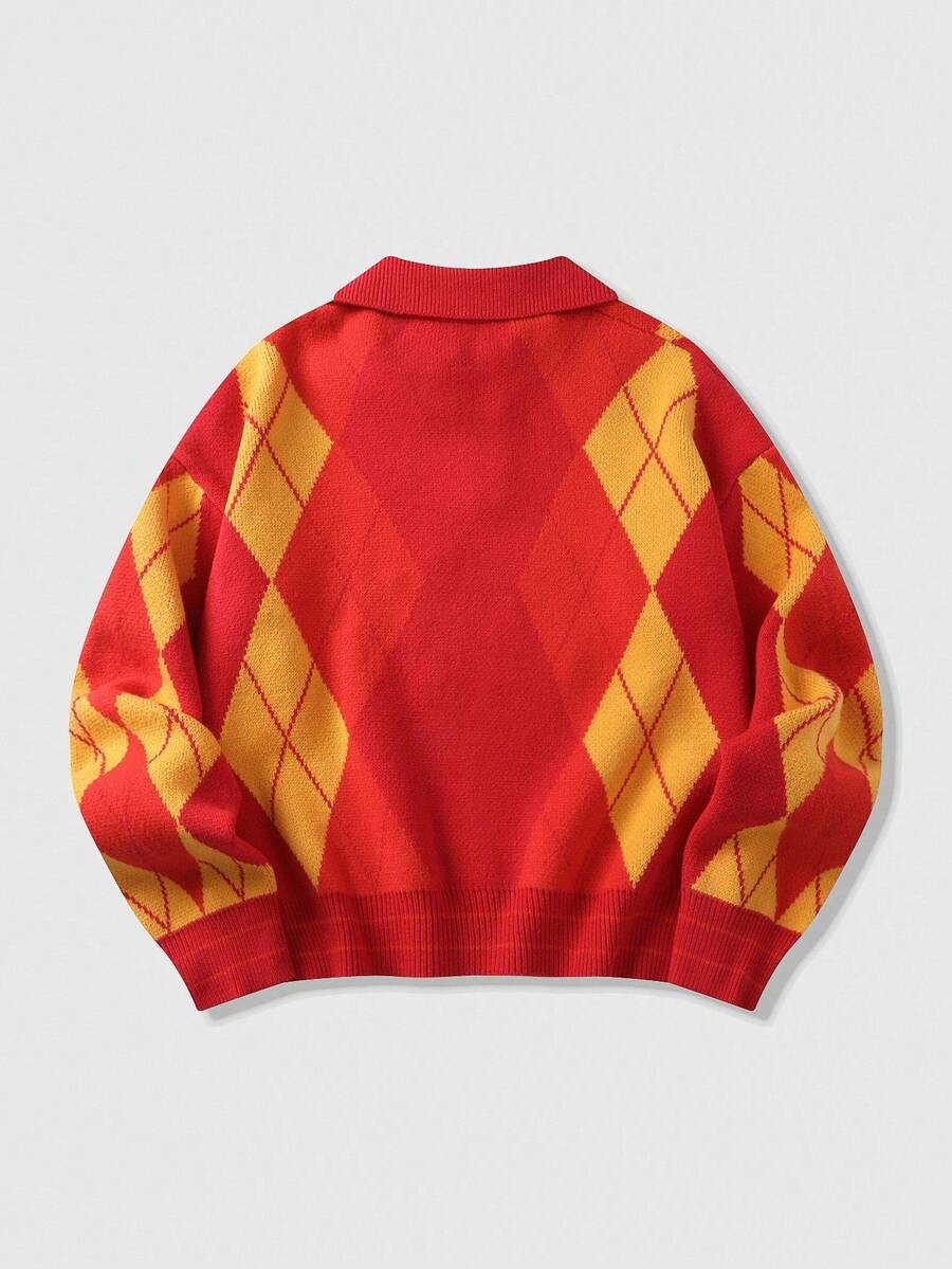 Prep Men's Embroidered Pattern Jacquard Knit Sweater, Loose Cropped Fit, Fall Winter