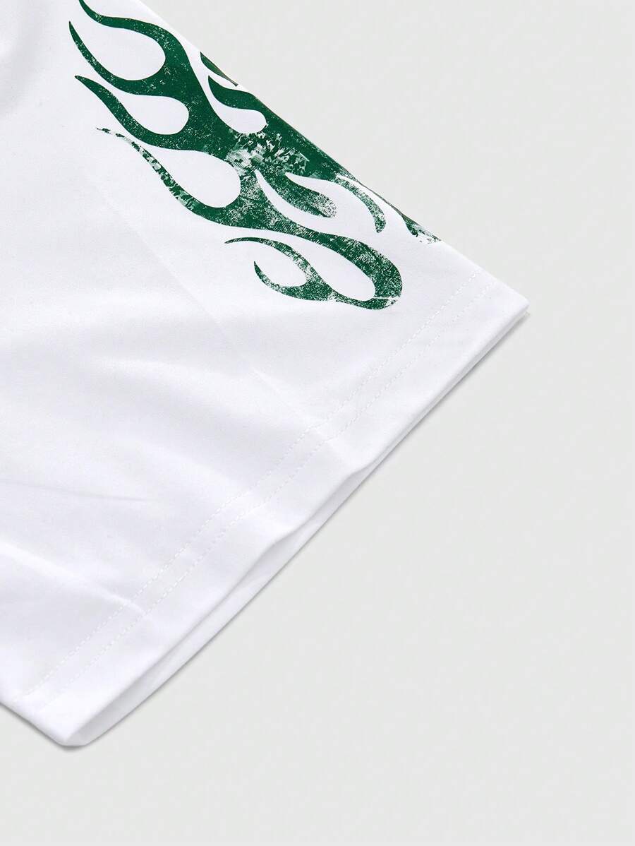 Prep Men's Jersey Athletic T-Shirt & Shorts Set, V-Neck Digit Print Animal Graphic Top And Star Line Design Shorts