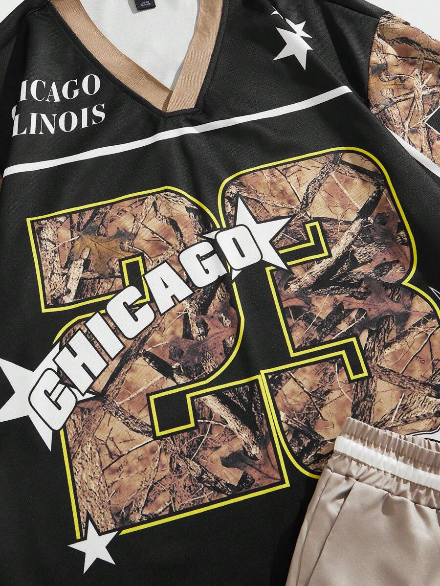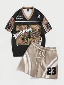 Prep Men's Jersey Letter Print V-Neck Short Sleeve T-Shirt And Shorts Set