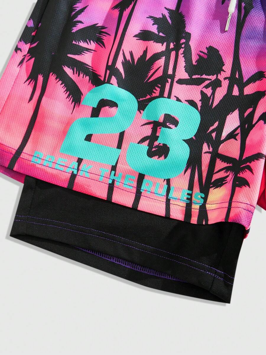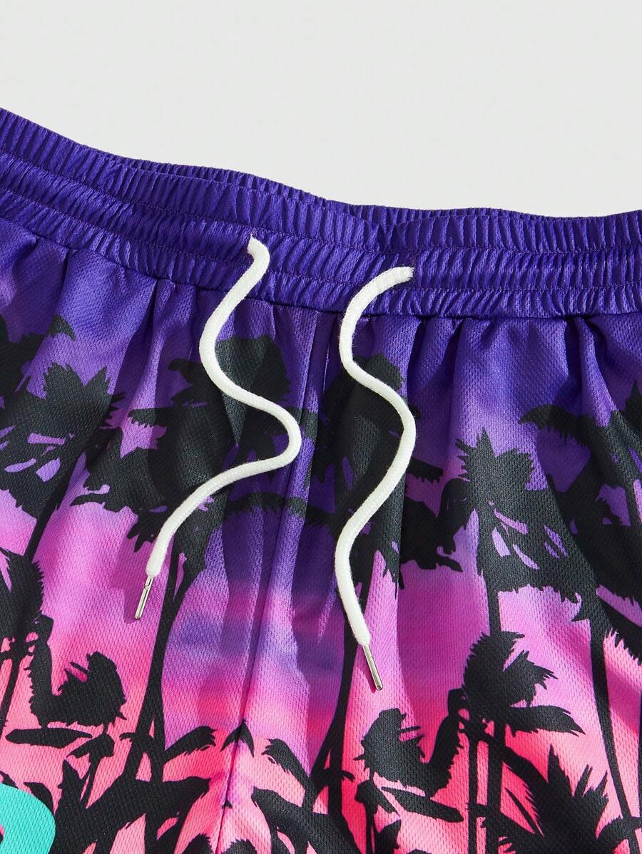 Men's Jersey Vacation Casual Coconut Tree Print Drawstring Waist Shorts