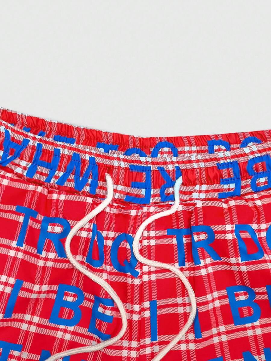 Prep Men's Letter & Plaid Printed Drawstring Waist Loose Casual Shorts