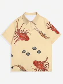 Prep Men's Lobster Print Casual Short Sleeve Polo Shirt, Summer