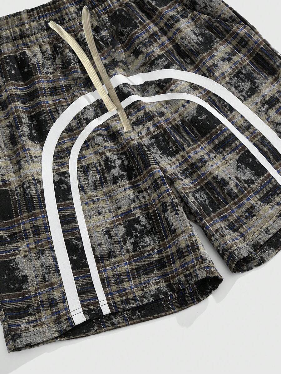 Street Life Men's Preppy Solid Color Patchwork Lace-Up Front Casual Shorts, Daily Wear