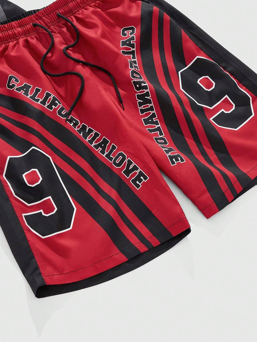 Prep Men's Racing Contrast Color Patchwork Letter & Number Print Shirt & Shorts Set