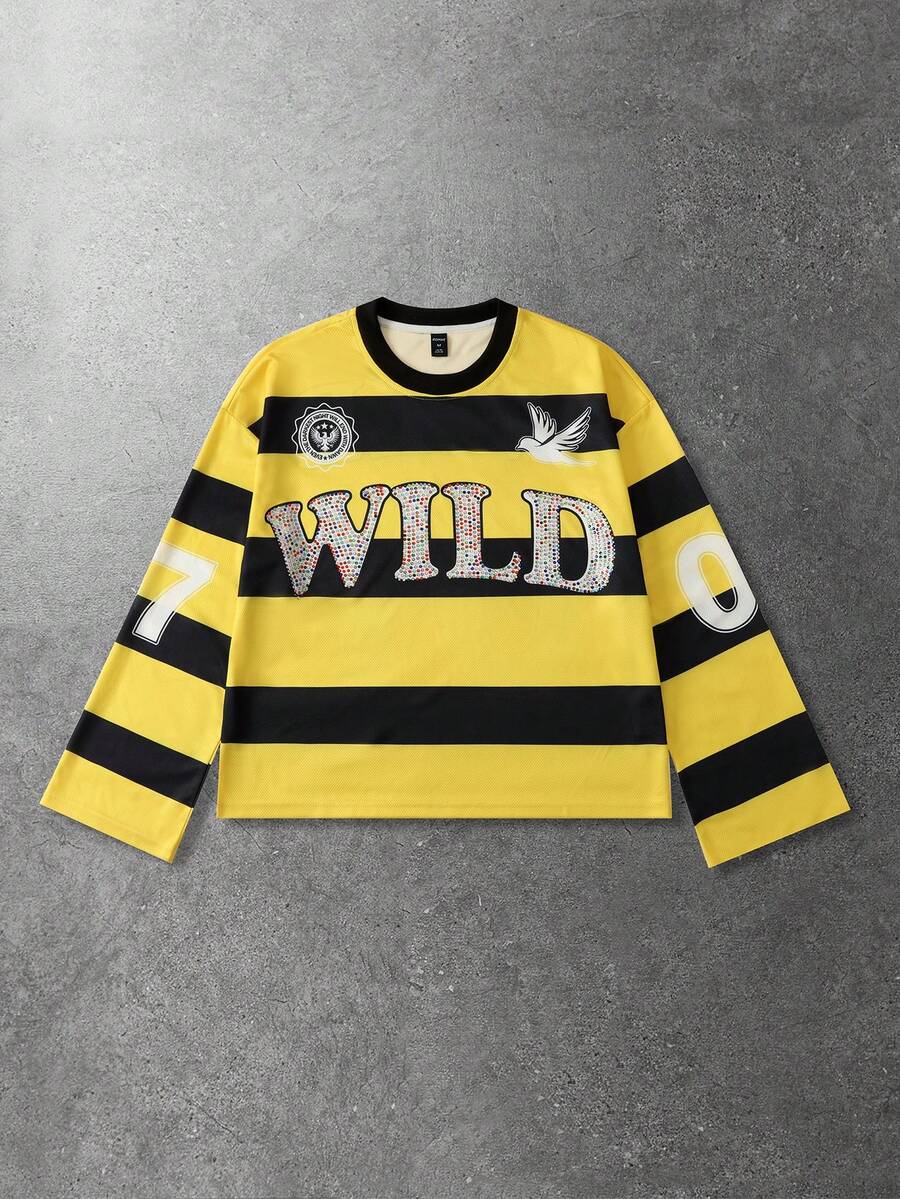 Prep Men's Sparkling Diamond Print Striped Long Sleeve T-Shirt