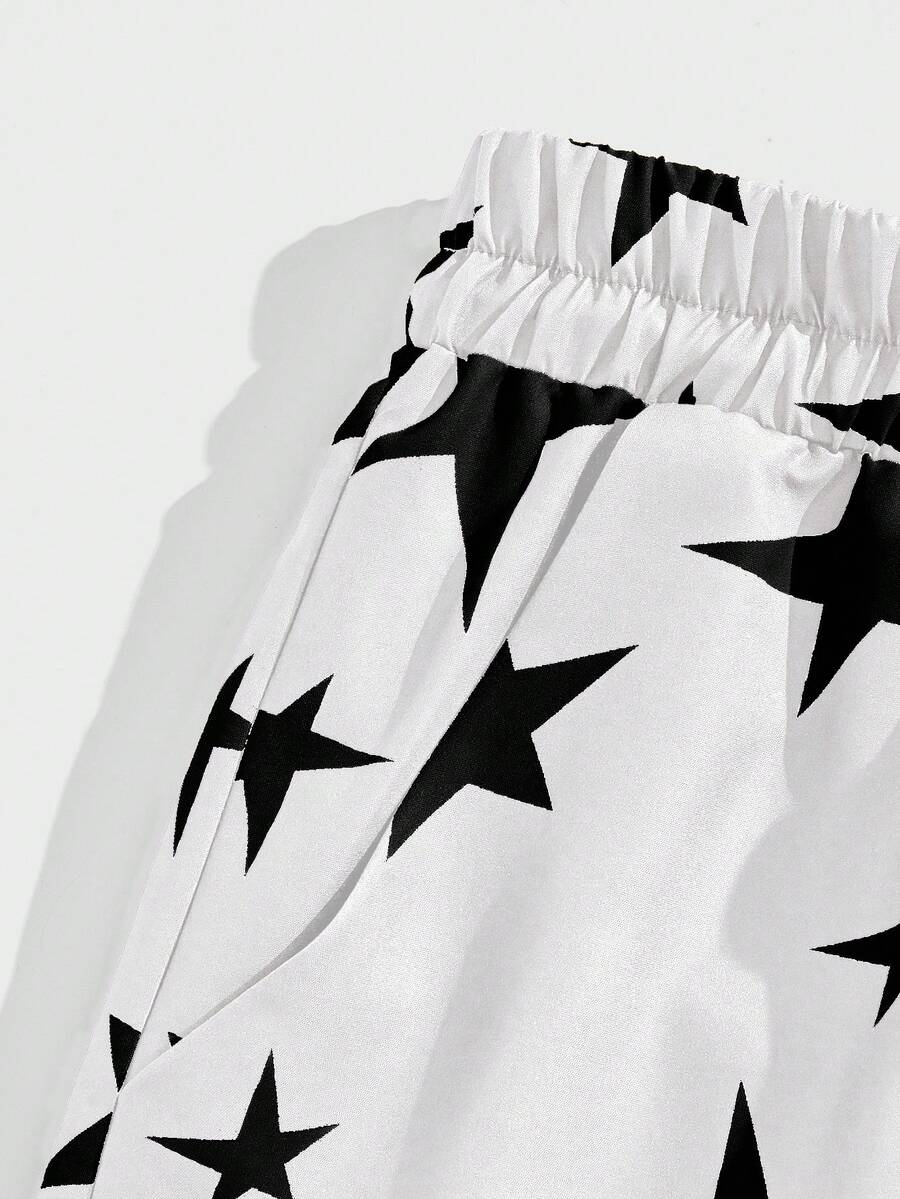 Prep Men's Star Pattern Drawstring Waist Shorts, Football Style