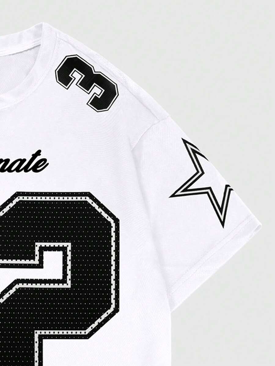 Prep Men's Summer Casual Letter Print Crew Neck Short Sleeve Football Jersey Style T-Shirt ,Graphic Tee