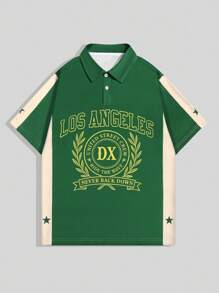 Prep Men's Summer College Contrast Color Letter Graphic Short Sleeve Polo Shirt