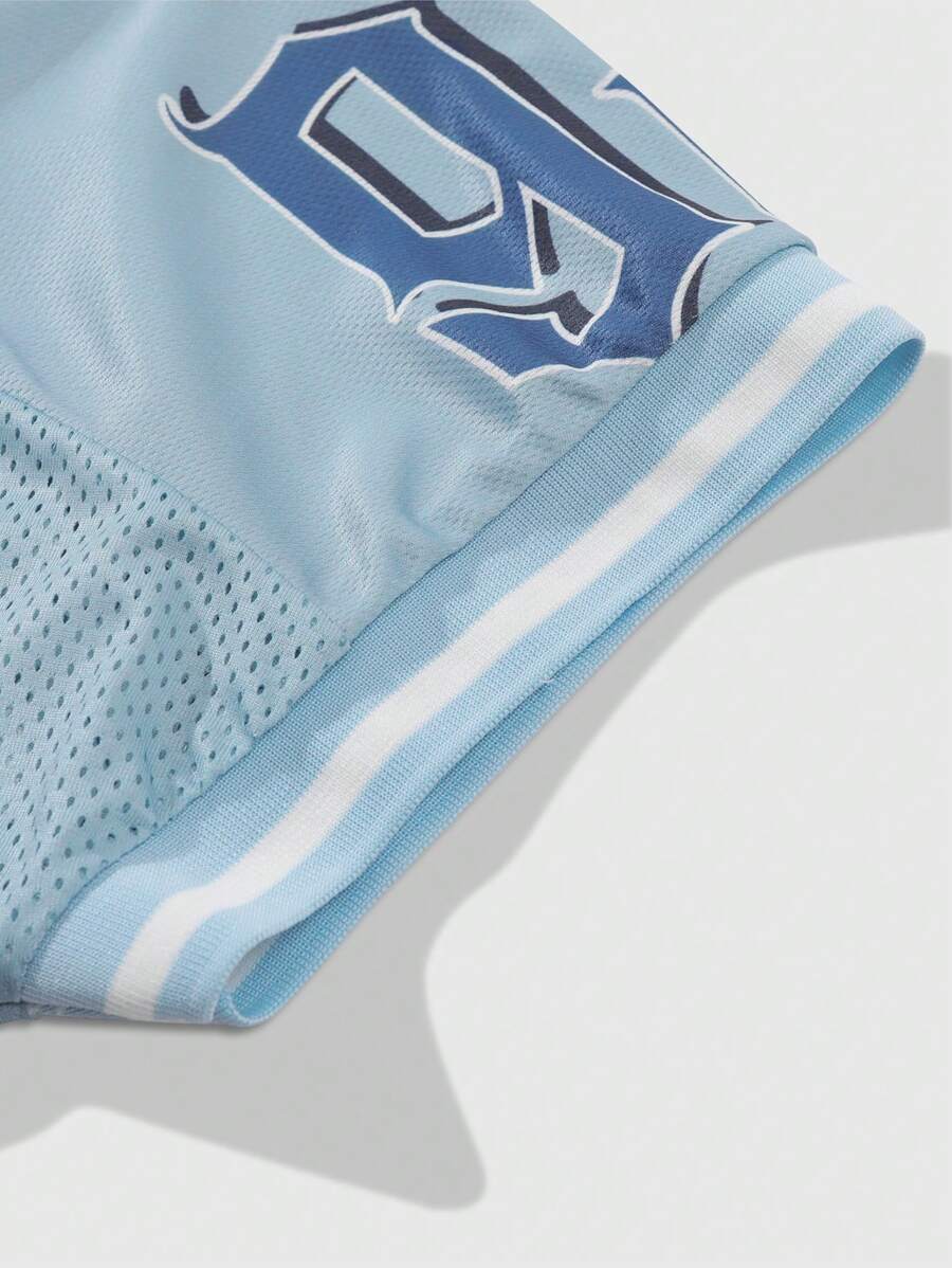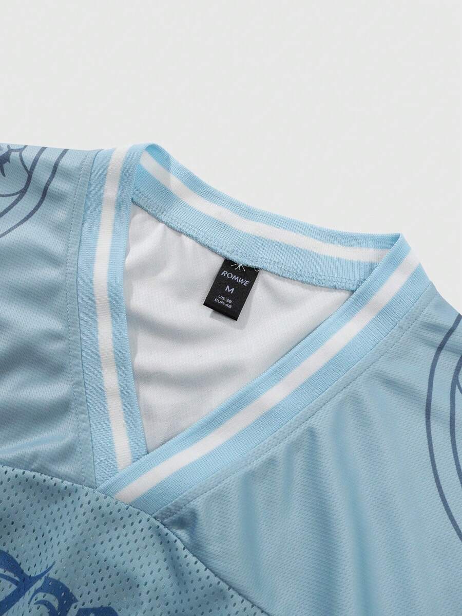 Prep Men's Summer Letter Printed V-Neck Short Sleeve Casual Football Jersey Style T-Shirt, School