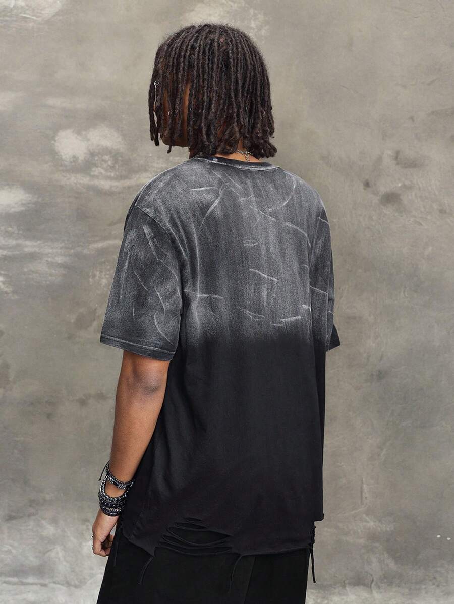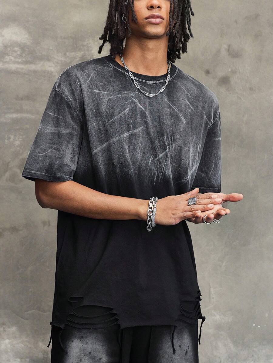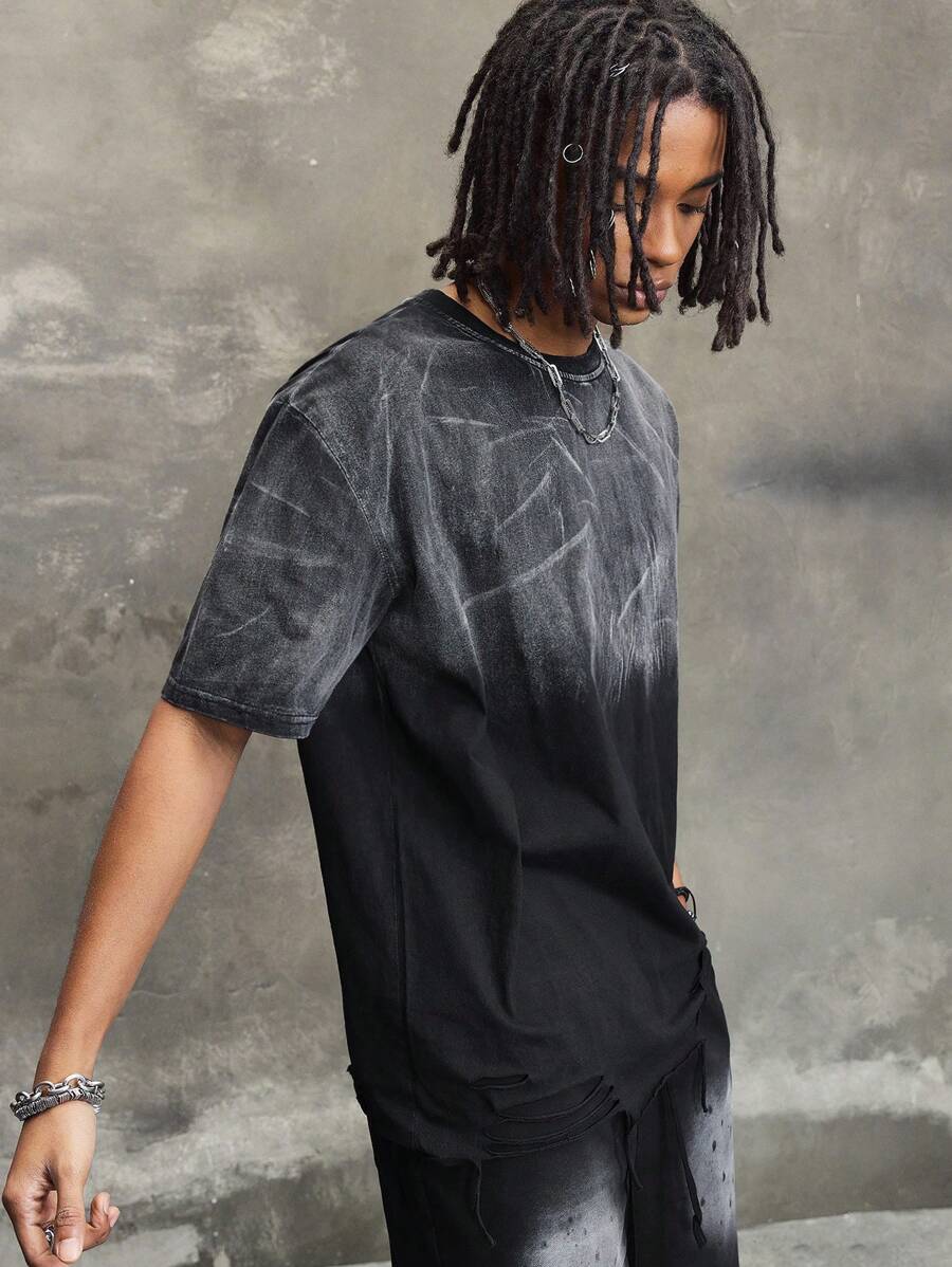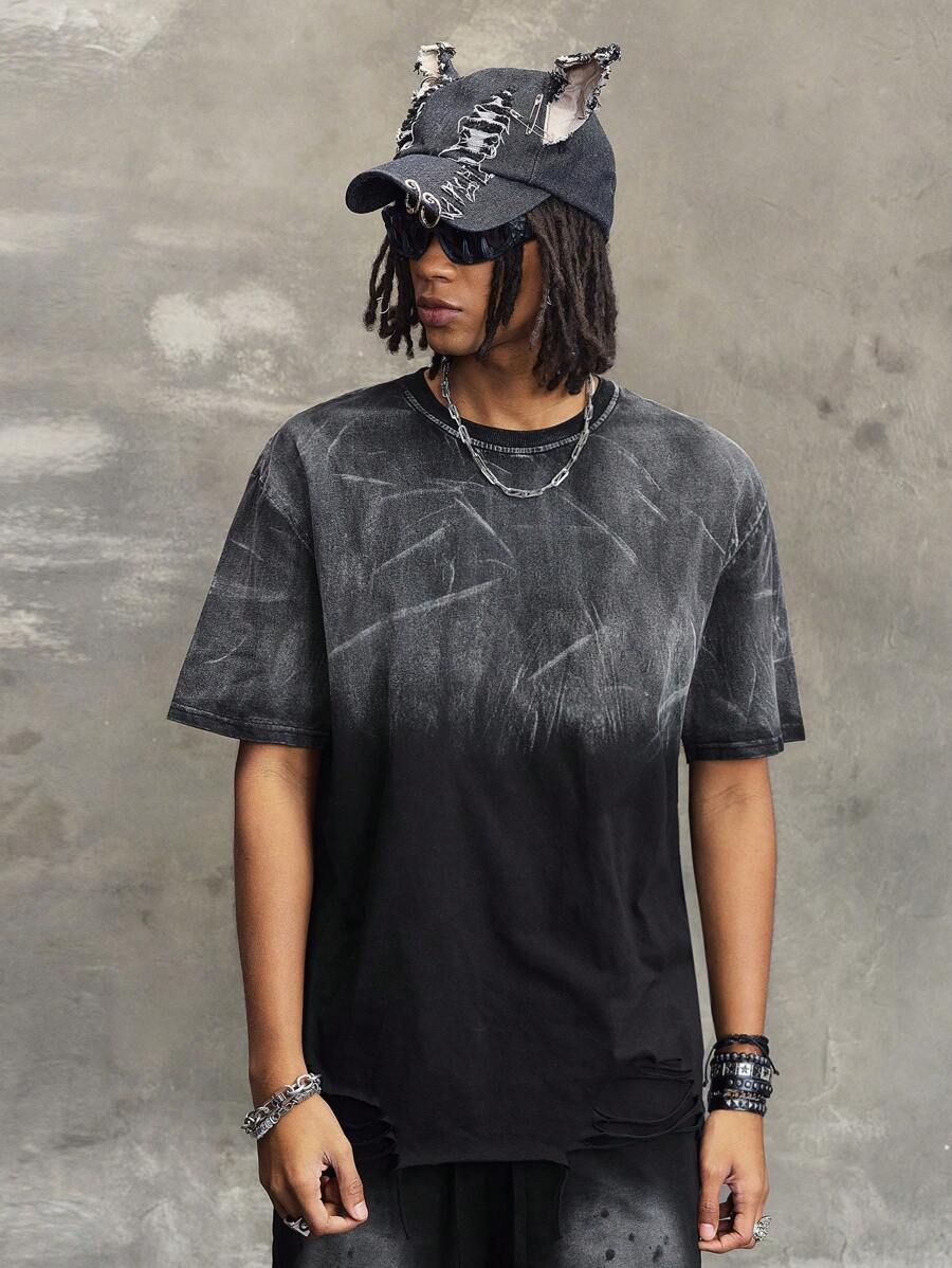 Street Life Men's Vintage Washed Gradient Short Sleeve T-Shirt, Casual Street Style, Summer