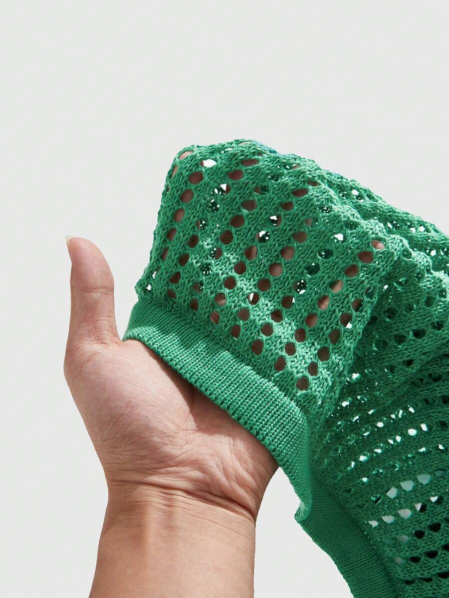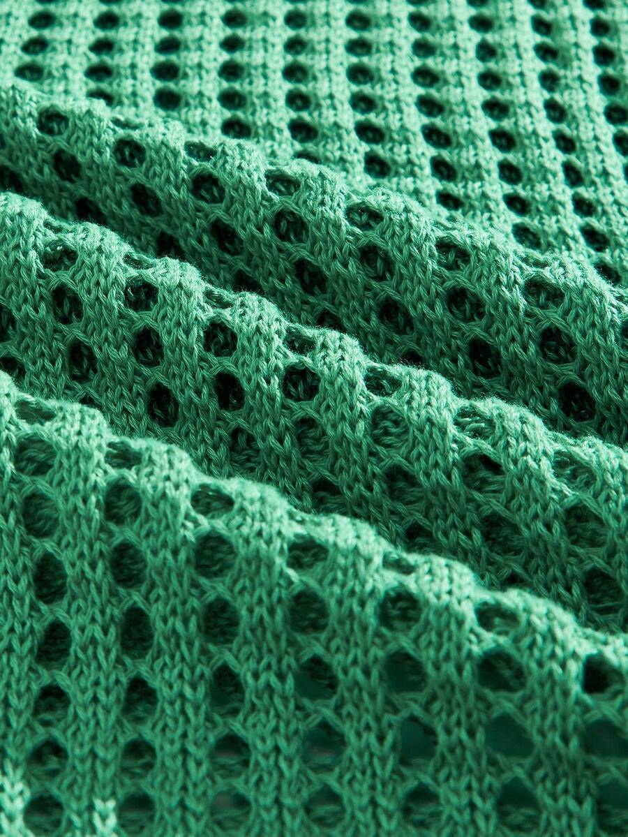 Prep Plus Size Men's Street Style Jacquard Hollow Top, Fashionable For Summer