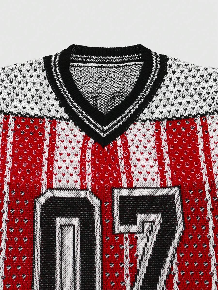 Casual Striped Textured Knit Men Loose Fit Baseball Knit Top, Street Sporty Jersey Style