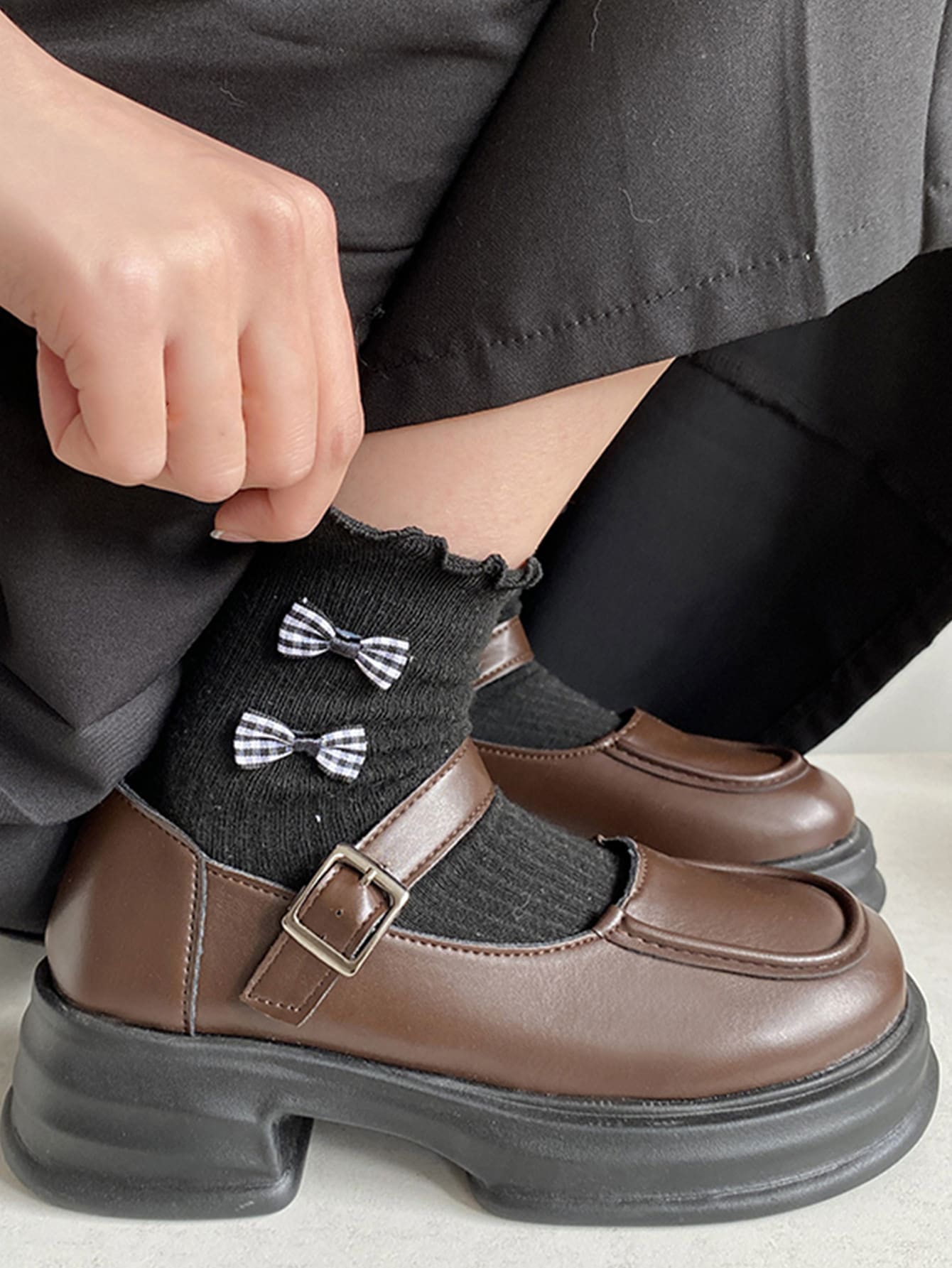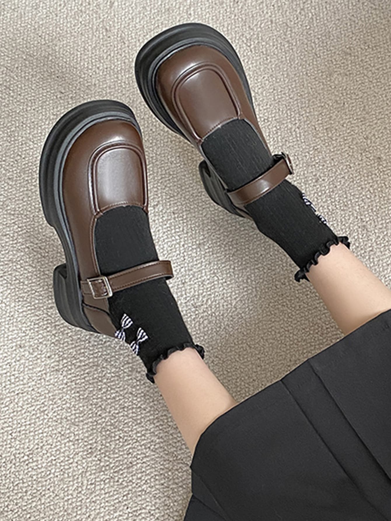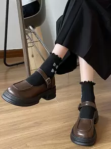 Preppy Brown Mary Jane Shoes For Women, Stitch Detail Buckle Decor Platform Shoes