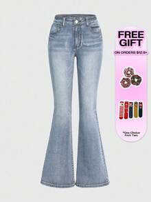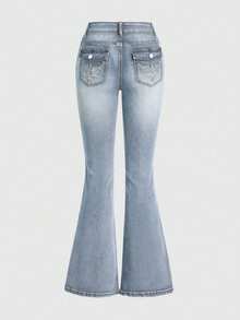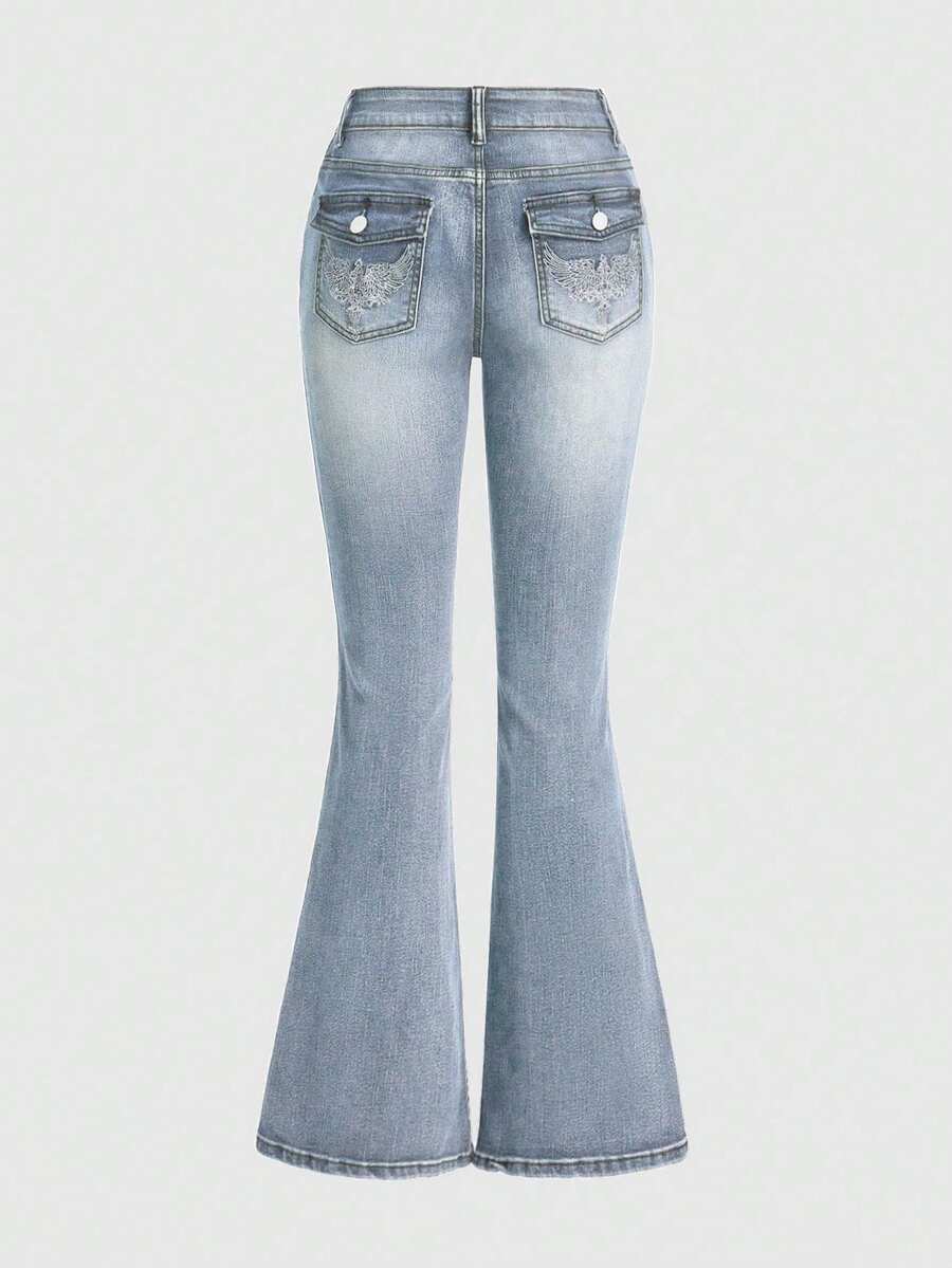 Grunge Punk Punk Chic Vintage Embroidered Fitted Low Waist Flare Jeans, Light Blue