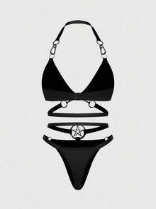Grunge Punk Punk Metal Buckle Pentagram Triangle Bra And Panty Set