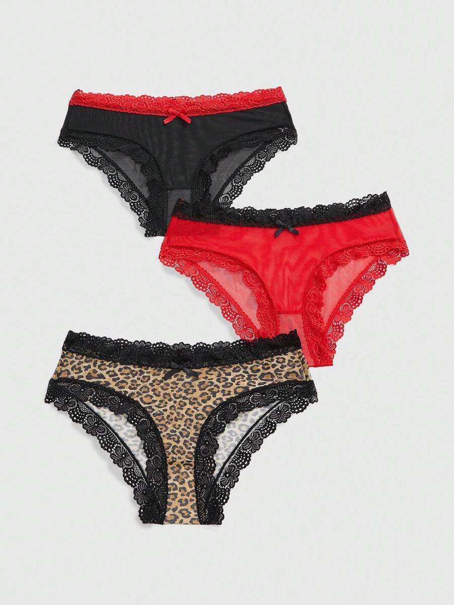 ROMWE Avant 3pcs/Set Fashionable Lace Patchwork Comfortable Sexy Panties