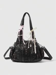 ROMWE Avant Classic Biker Chic Shoulder Bag, Casual Bowknot Rivet Detail Tote Bag For Women