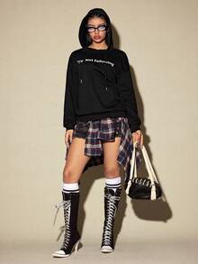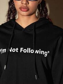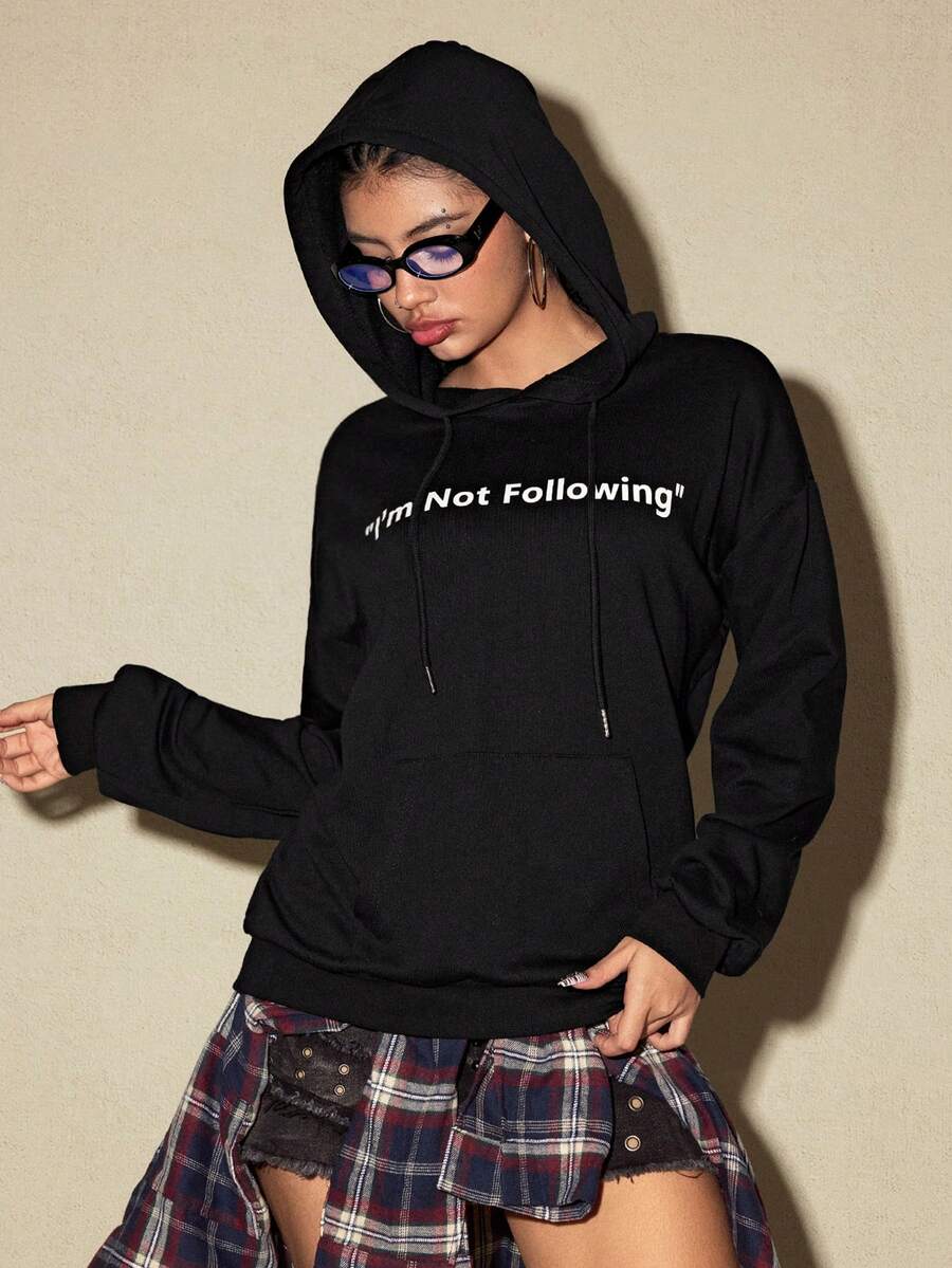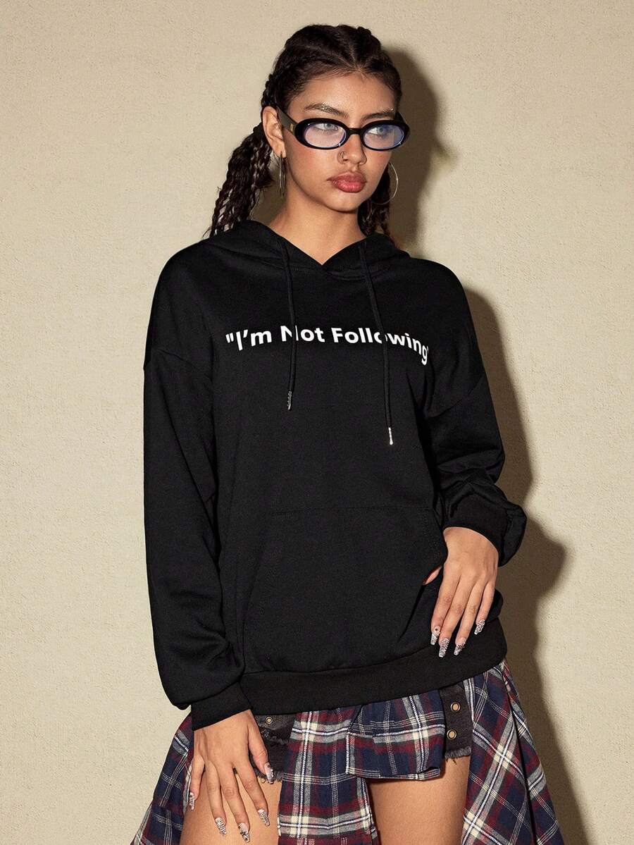 ROMWE Avant Fashionable Slogan Loose Fit Hoodie Sweatshirt