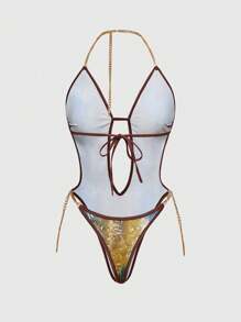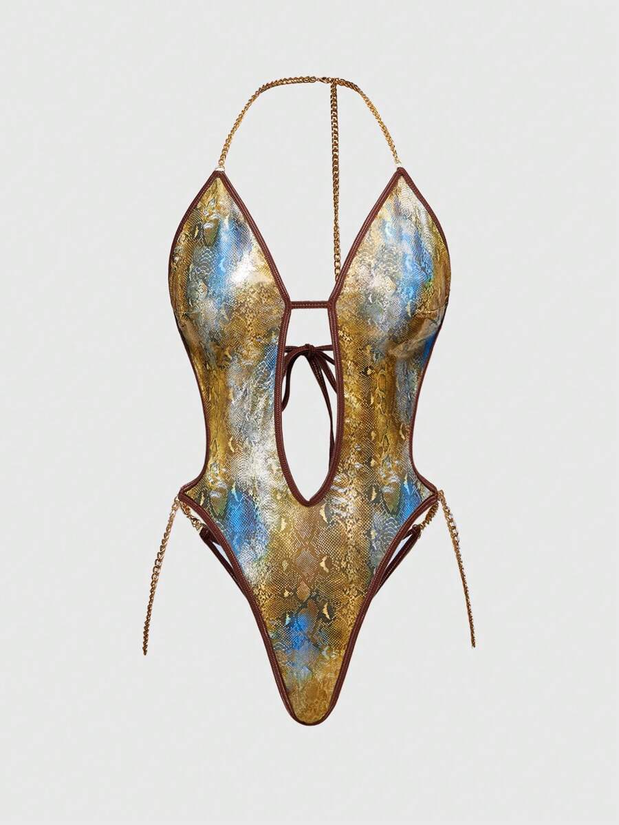 ROMWE Avant Fashionable Snakeskin Pattern Sexy Women's Metallic Chain Jumpsuit