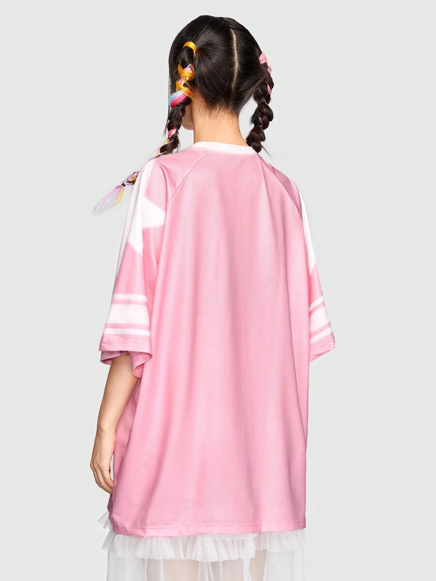 ROMWE Avant Leisure Sweet Style Star, Number, Sport Print Loose T-Shirt, School