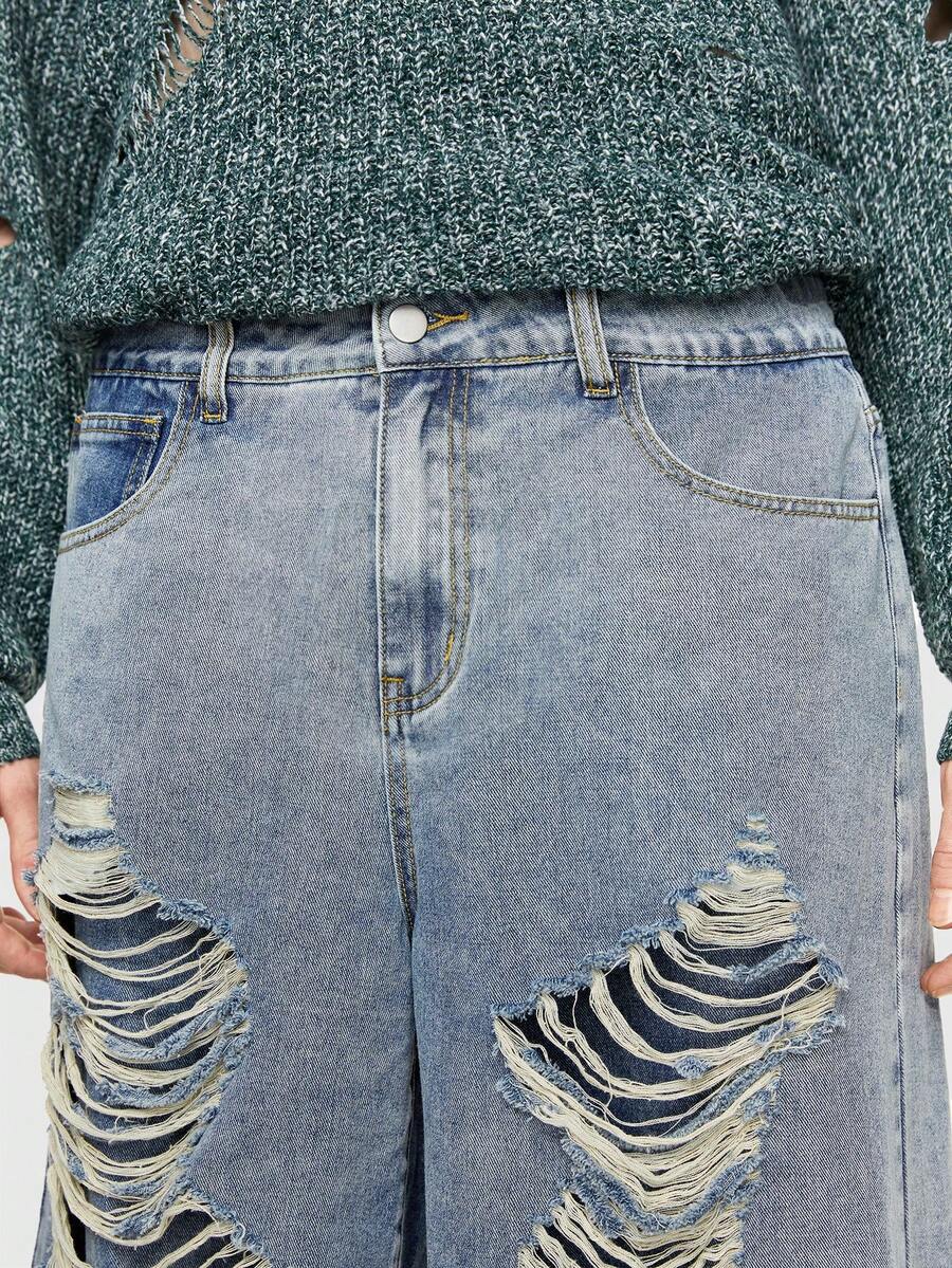 ROMWE Avant Men 2 In 1 Jeans Distressed And Frayed Detailing