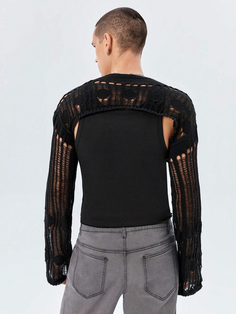 ROMWE Avant Men Solid Hollow Out Super Crop Sweater