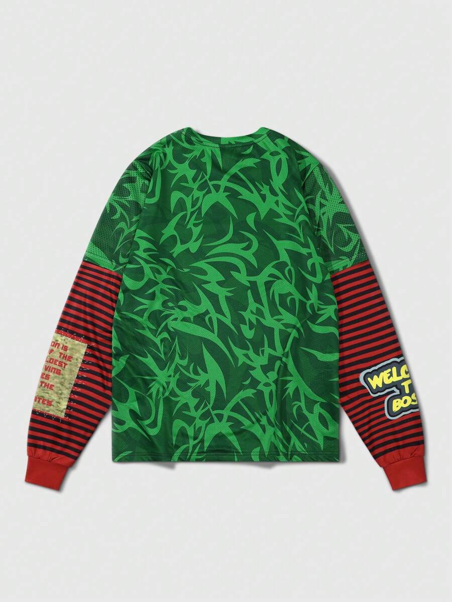 ROMWE Avant Men's Casual Crew Neck Long Sleeve T-Shirt With Letter & Striped Print, School