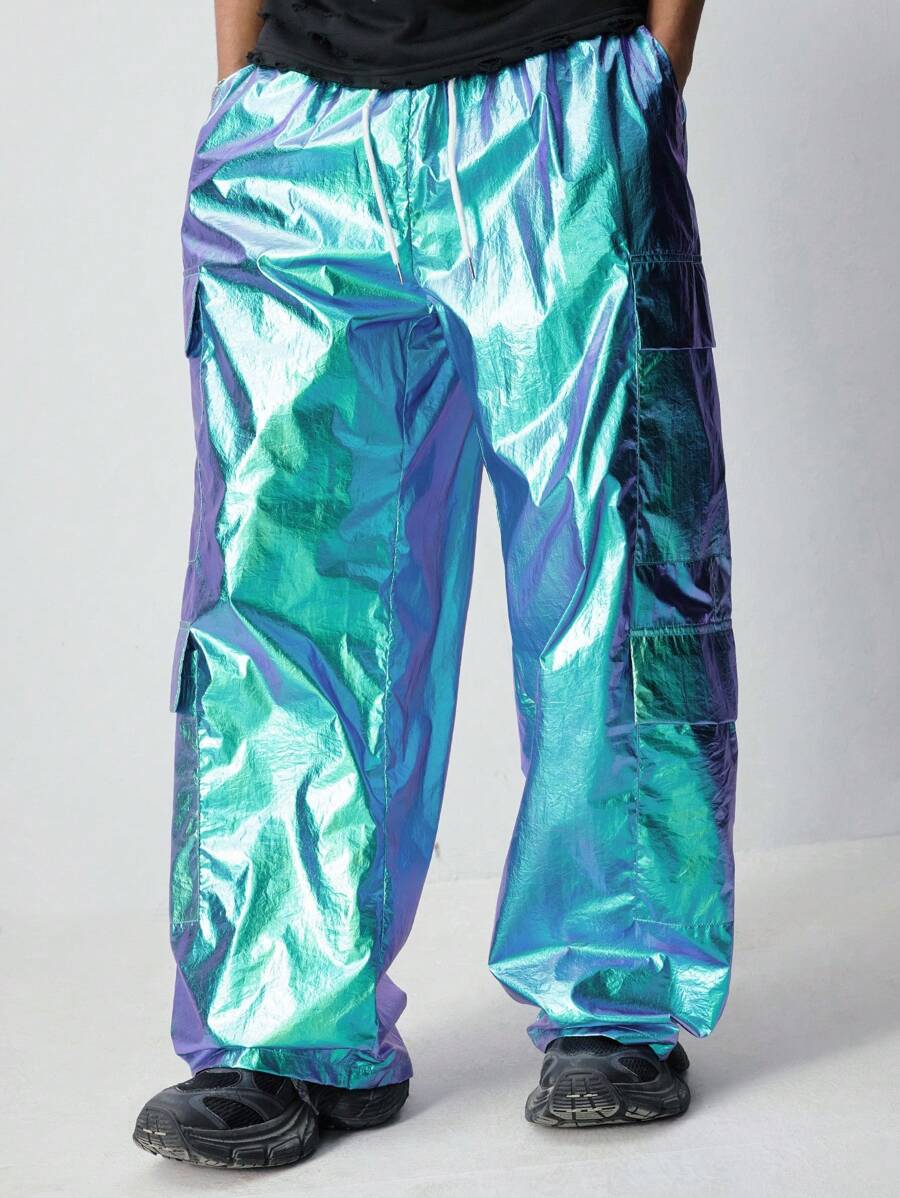 Street Life Men's Gradient Color Glossy Laser Cargo Pocket Wide Leg Pants
