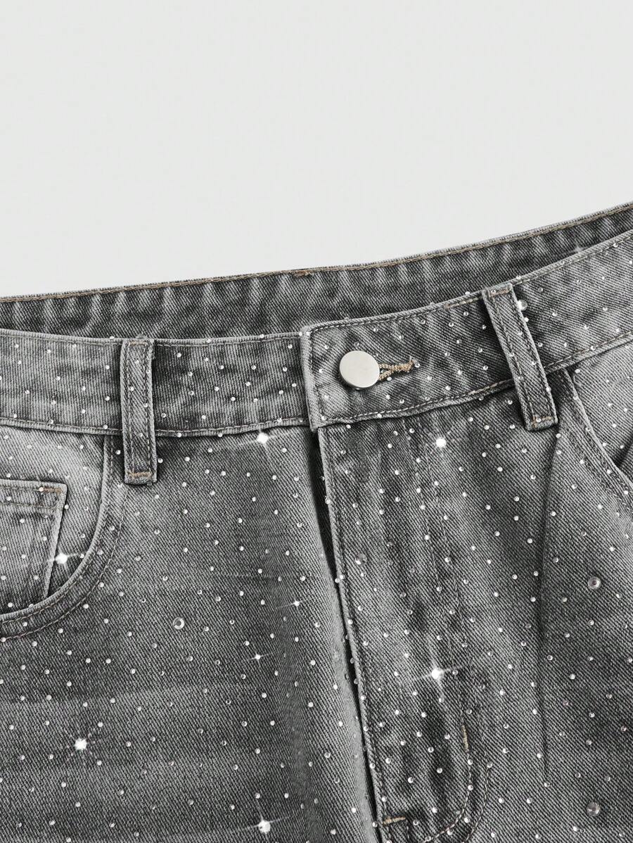 ROMWE Avant Men's Sparkling Rhinestone Embellished Flared Leg Jeans