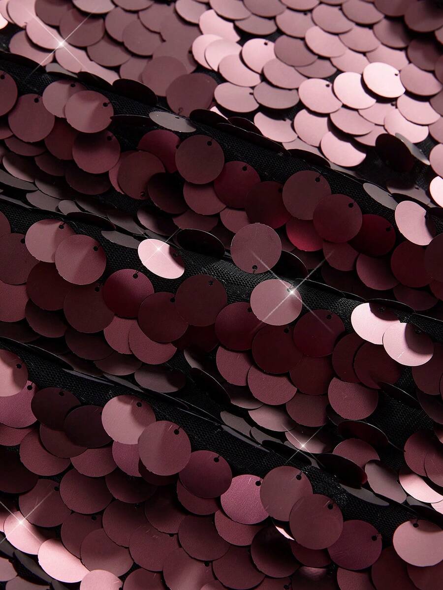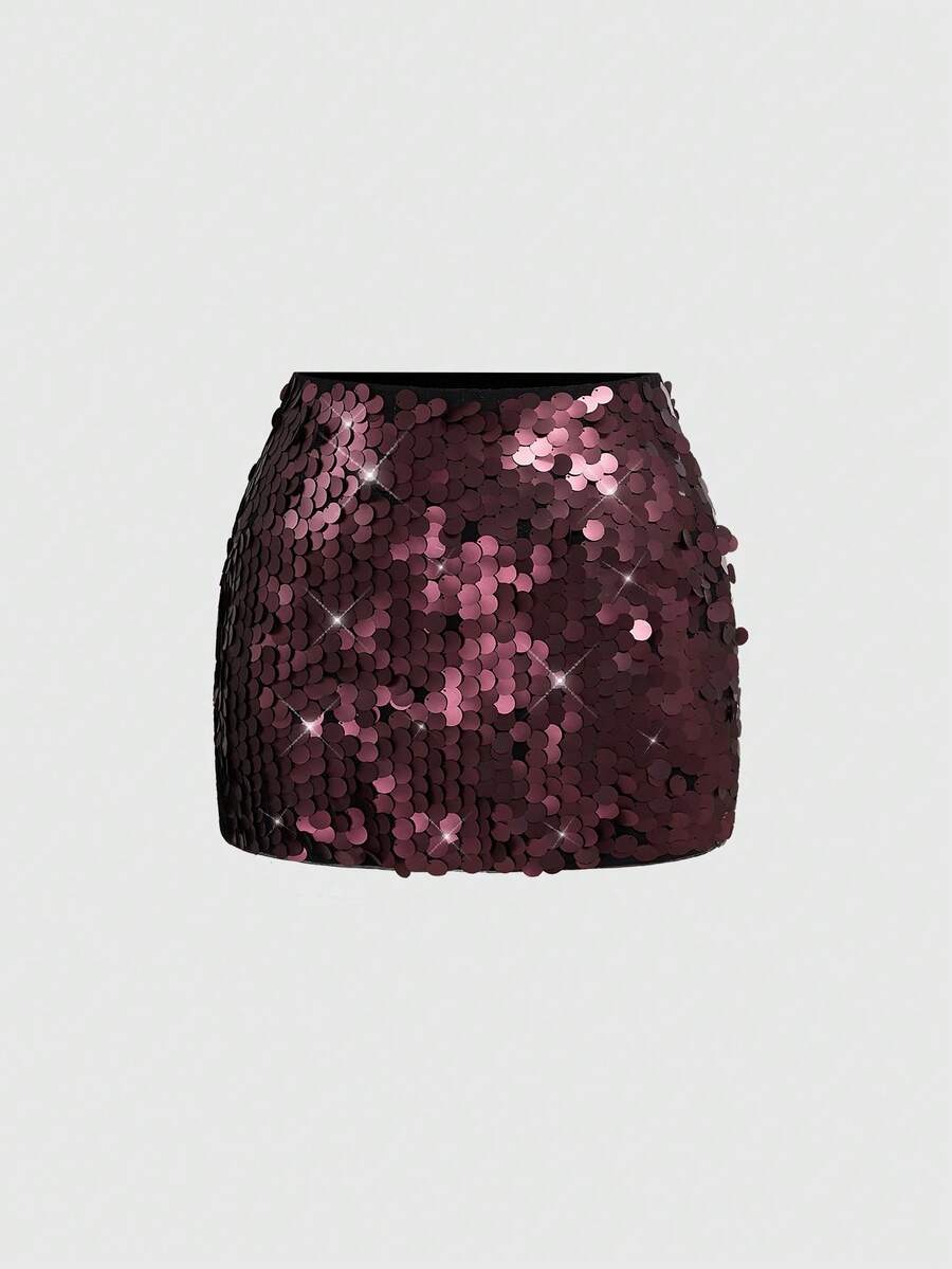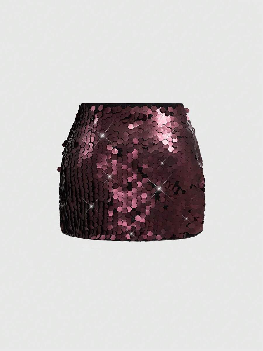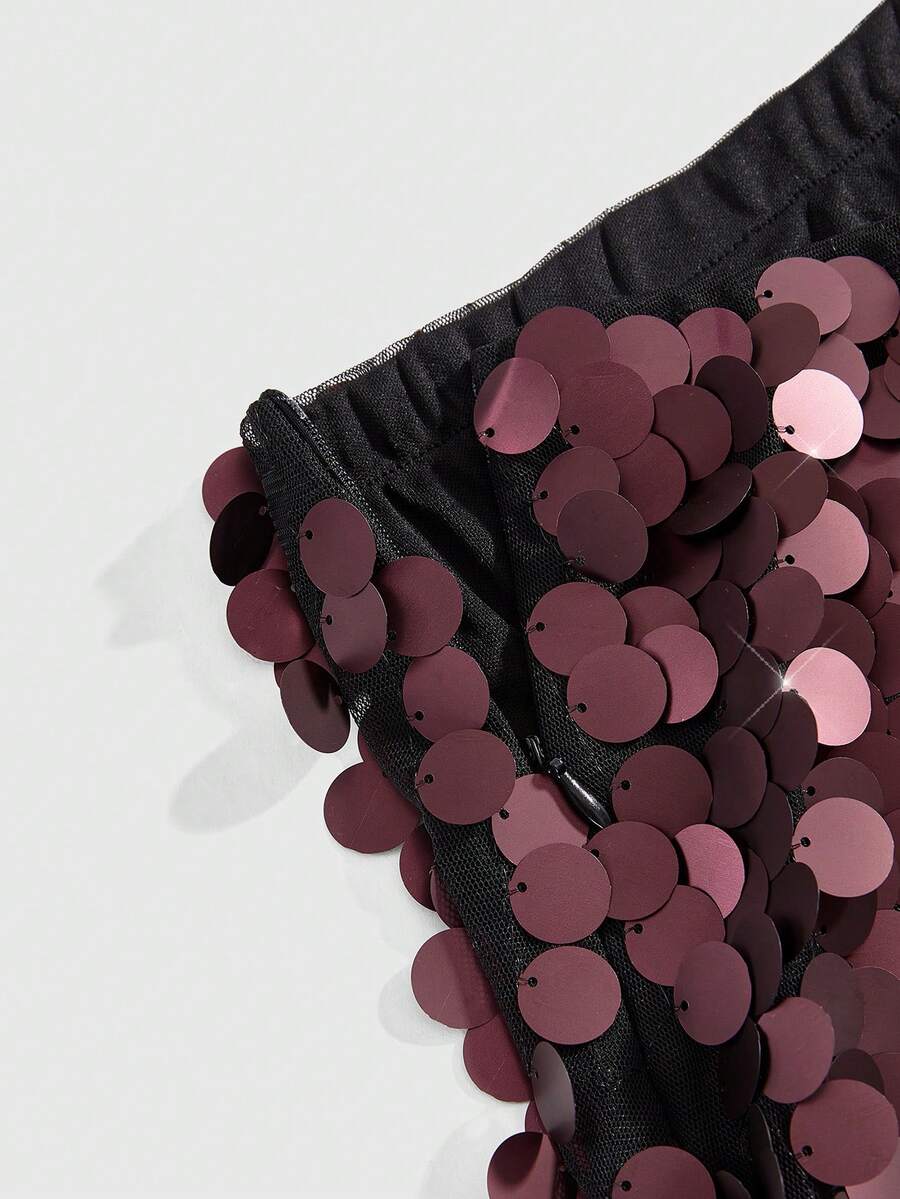 ROMWE Avant Plus Size Women's Glitter Sequin Skirt, Wine Red, Pair With Top, Matte Finish, Holiday Edition
