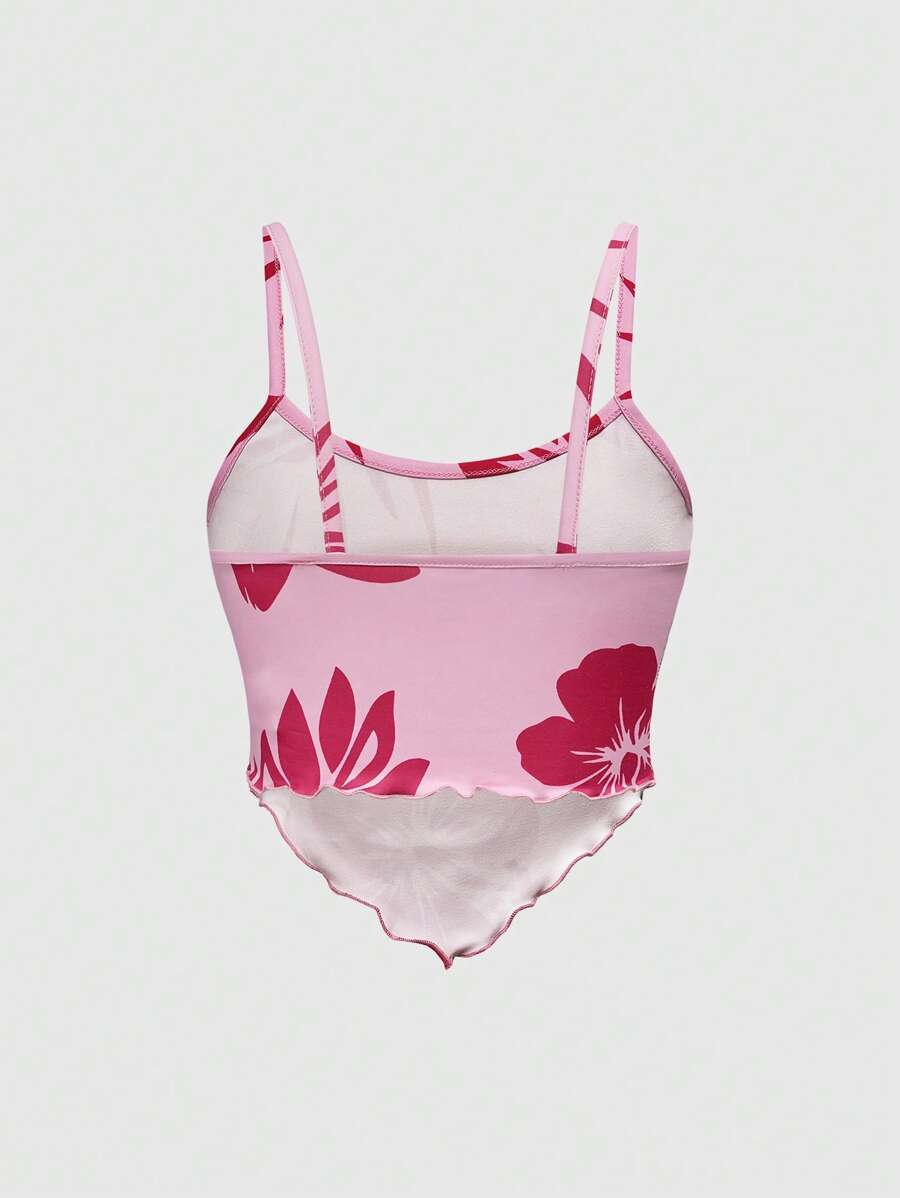 ROMWE Avant Tropical Island Coconut Palm Girl & Hibiscus Print Sling Camisole & Shorts Pajamas Set, Summer Casual